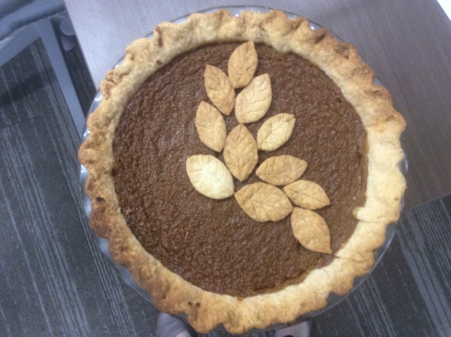 - Once the pie is baked, let cool before putting the pie crust decorations on it or slicing the pie. If the pie is hot, cutting it will cause a mess, if pumpkin pie is like any other dessert pie I’ve made!