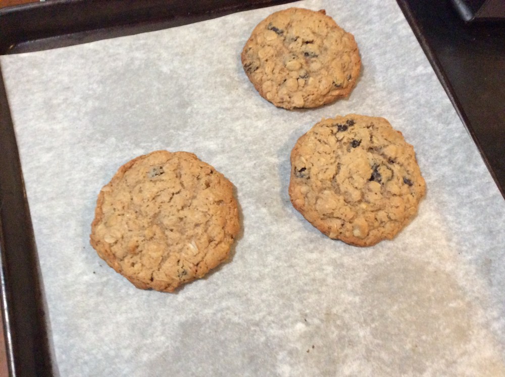 I really wanted oatmeal cookies last weekend. When I went through my pantry, I had almost everything I needed, but I didn’t have brown sugar. In the time of improvised cooking, I looked up what I could replace the brown sugar with. The base recipe comes from the Ultimate Chocolate Chip Cookie from The Cook’s Illustrated Cookbook.