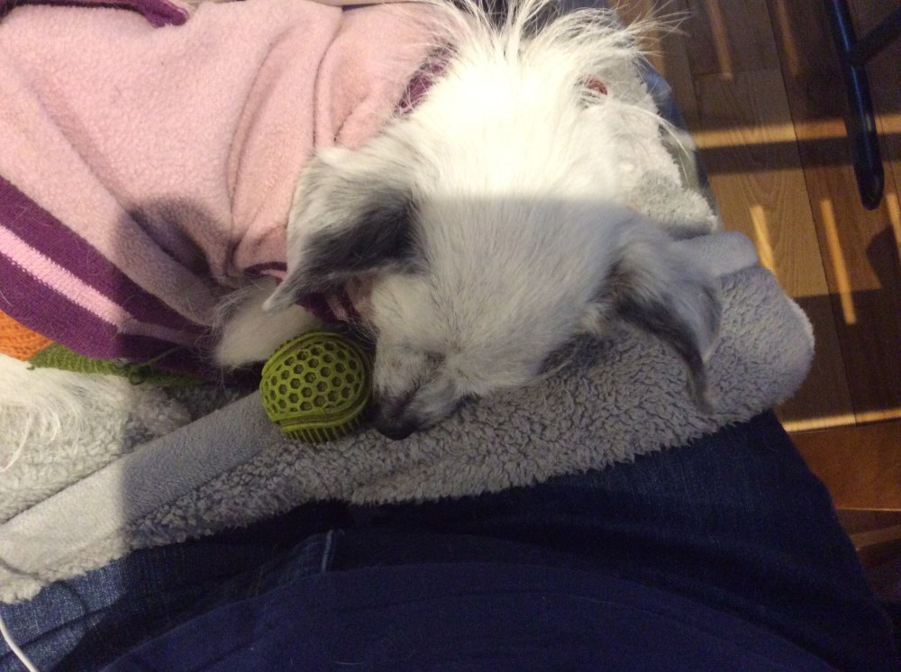She is cold so much of the time, that I put a light weight shirt over her heavy sweater to help keep her warm. We also turned up the temperature in the part of the house the dogs are in so she’ll stay warmer.