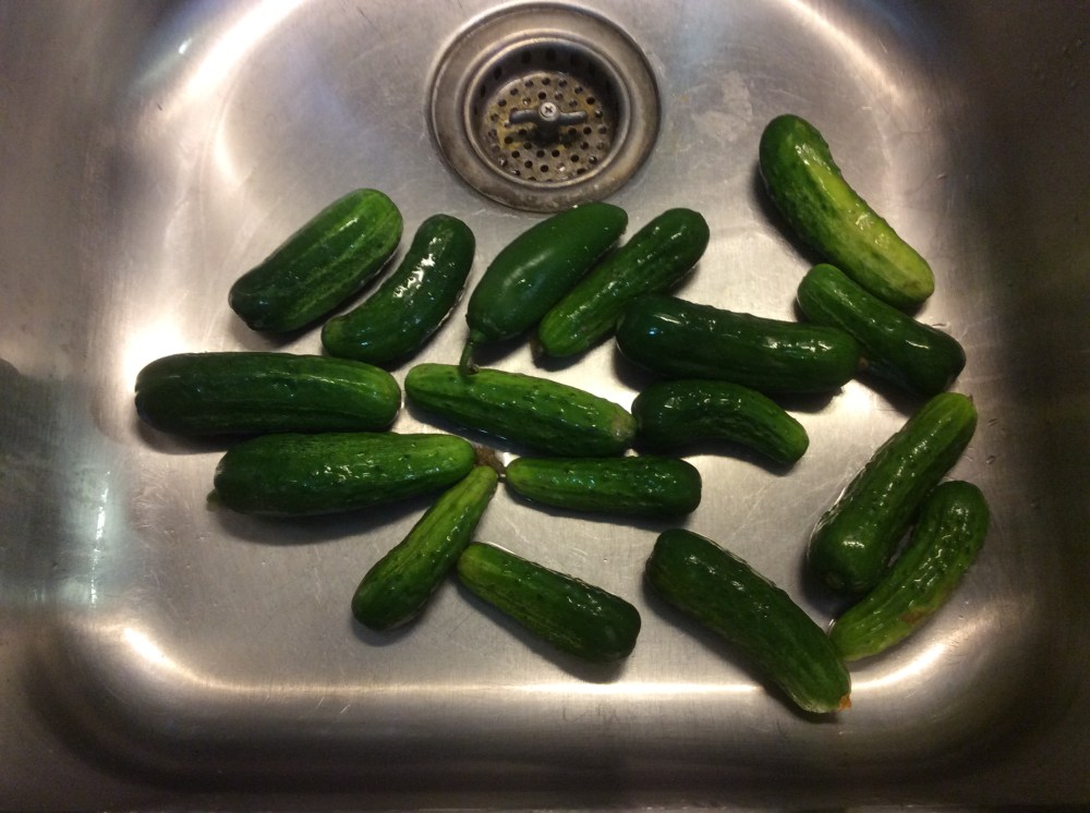 I grew dill this summer so I could make pickles. Heinie’s Market had pickling cucumbers and my dill was ready, so I knew the time was right to make pickles.