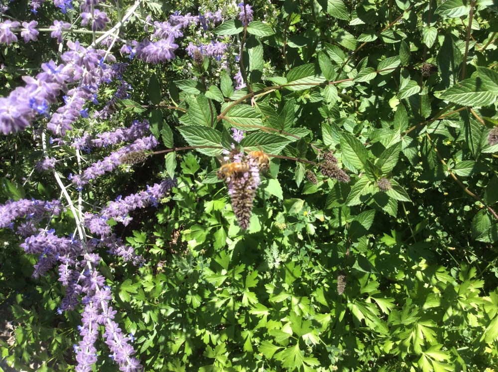 Bee on Russian Sage and Another on Mint