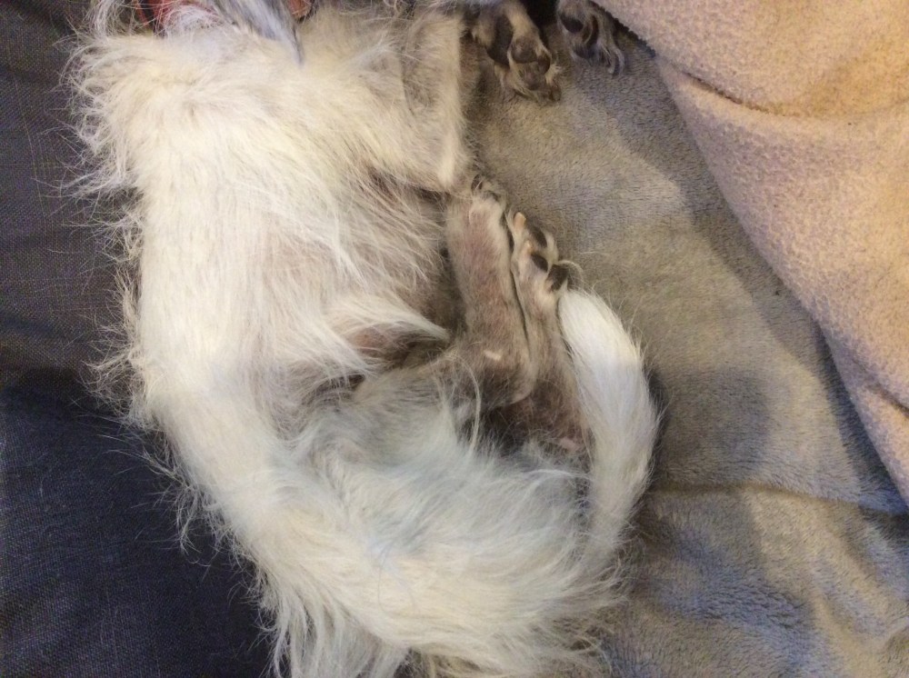 Friday afternoon, Bruce looked outside and saw Luna hoping a bit. She didn’t want to put much weight on her right back leg. Bruce picked her up and cleaned out from between her pads. She sometimes gets pine needle stuck in her paws.