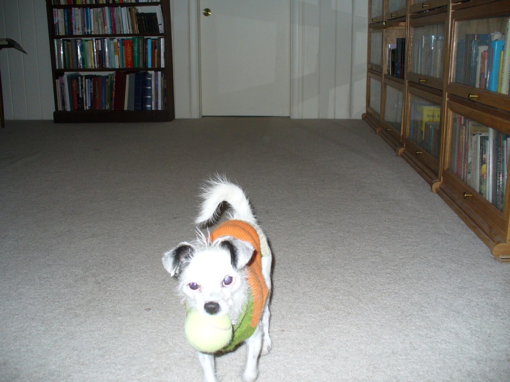 As I write this, my throat is tight, my nose is running, and my eyes are leaking tears. We took my sweet little Luna to vet one last time today. I will remember the joy and delight she showed as she raced around the yard, when she played with her balls, and best of all, when she snuggled up against me while I held her in my lap.