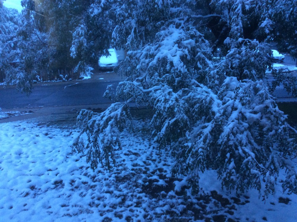 WHAT?!?! What’s the altitude where you’re at? I once experiencd snow in late June, in Switzerland, but it was high up at a mountain pass.