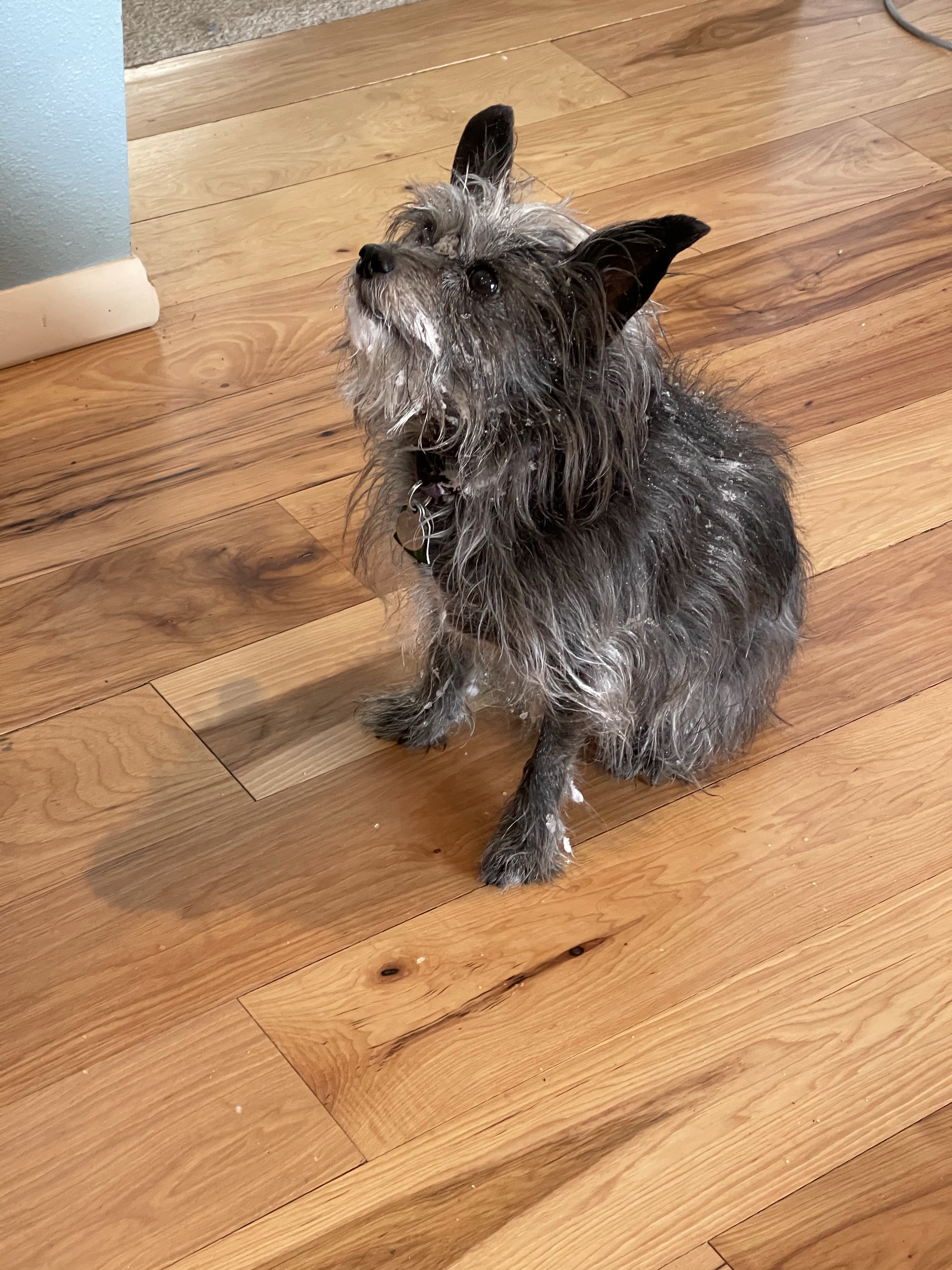 1. We got 11-12” in that same storm. Our little Garnet fell into a drift deeper than she is tall. She freaked out, but climbed out and headed to the house before I could get to her. Deep snow is tough on our small pups!