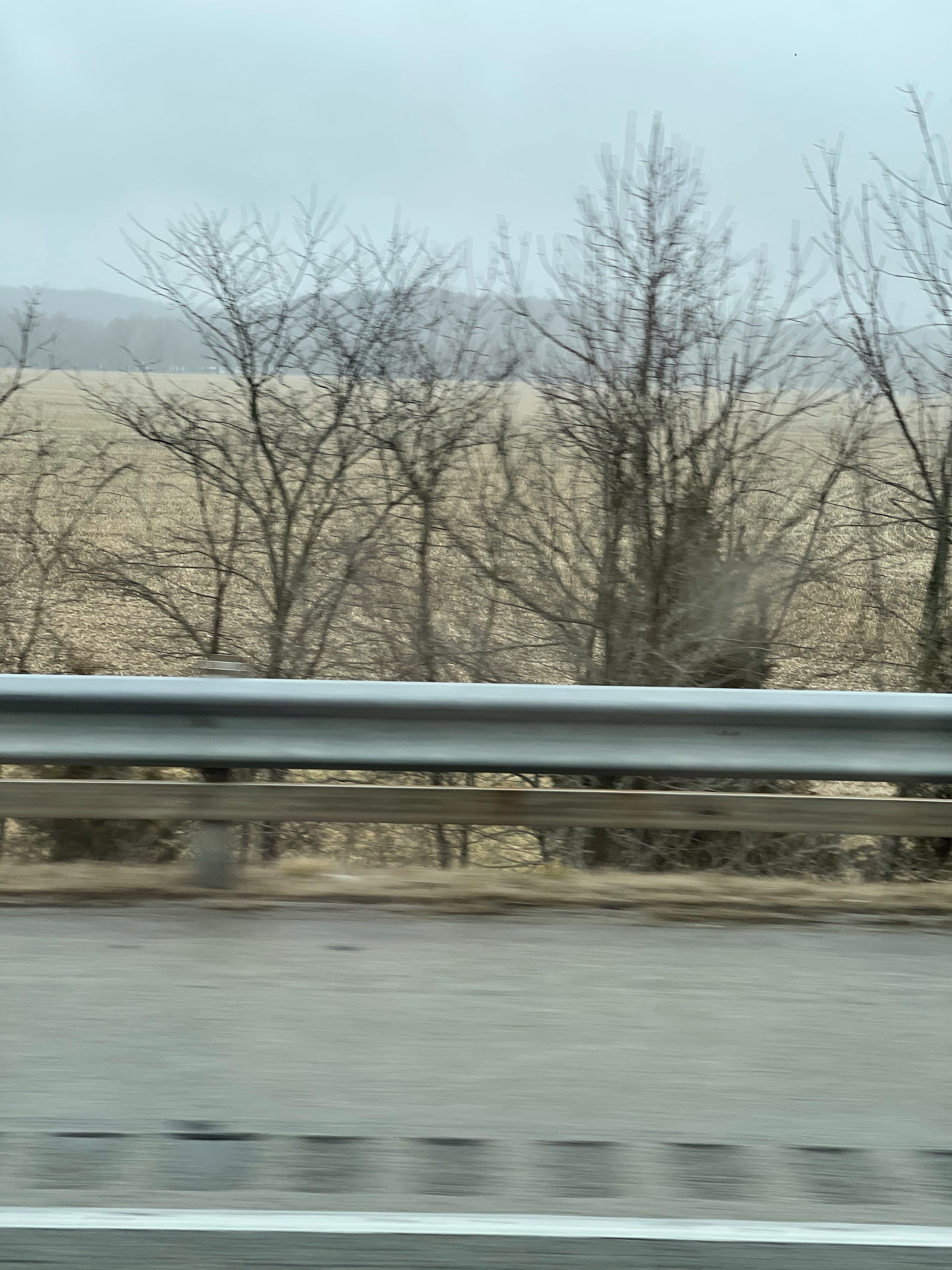 We are currently cruising through Indiana. It is foggy with some light rain.