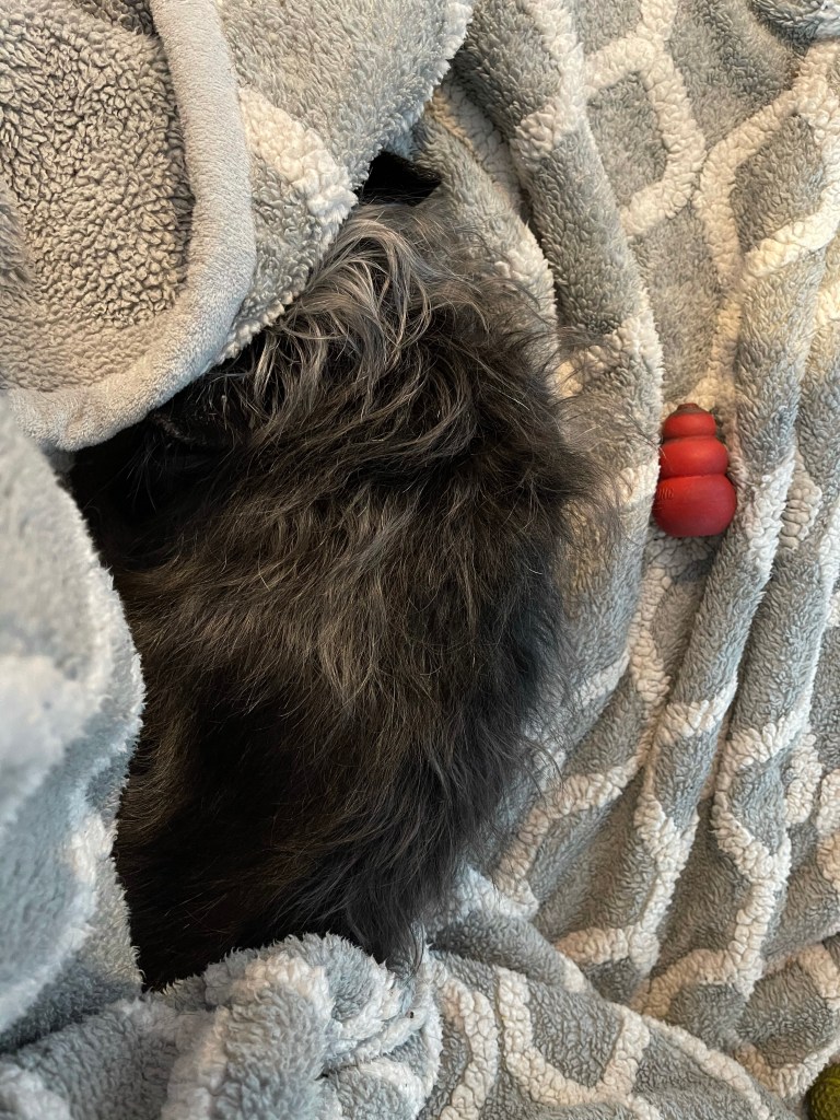 After Bruce took her for a long walk, Nox settled into her bed and took a nap, snoring, very loudly.