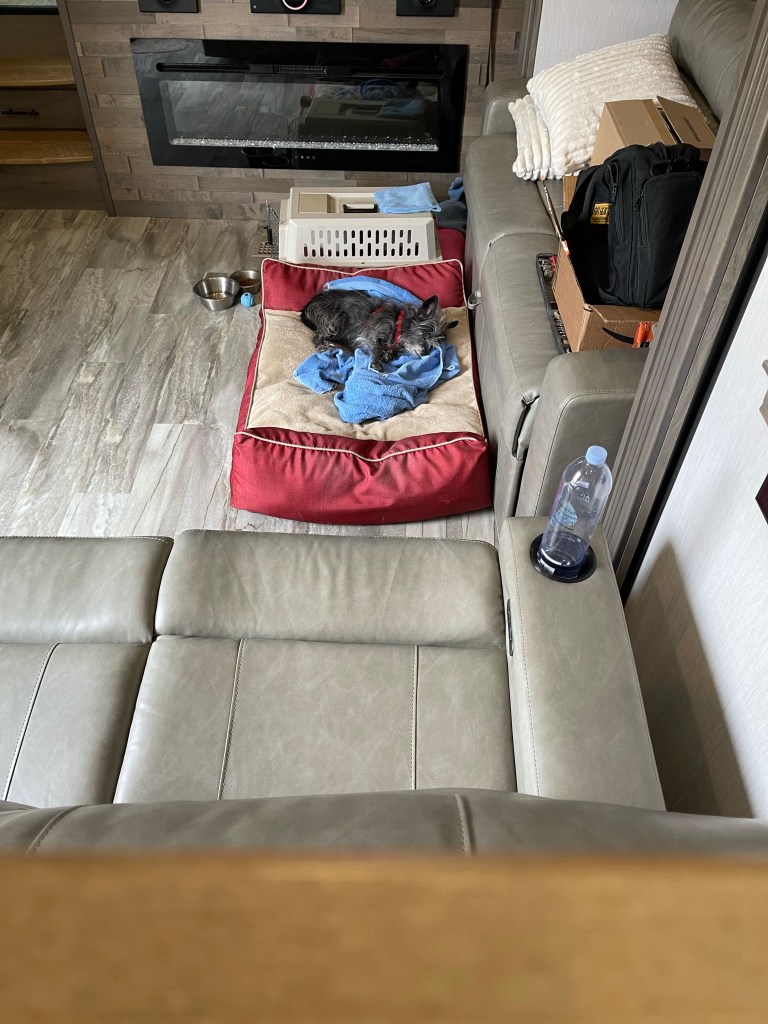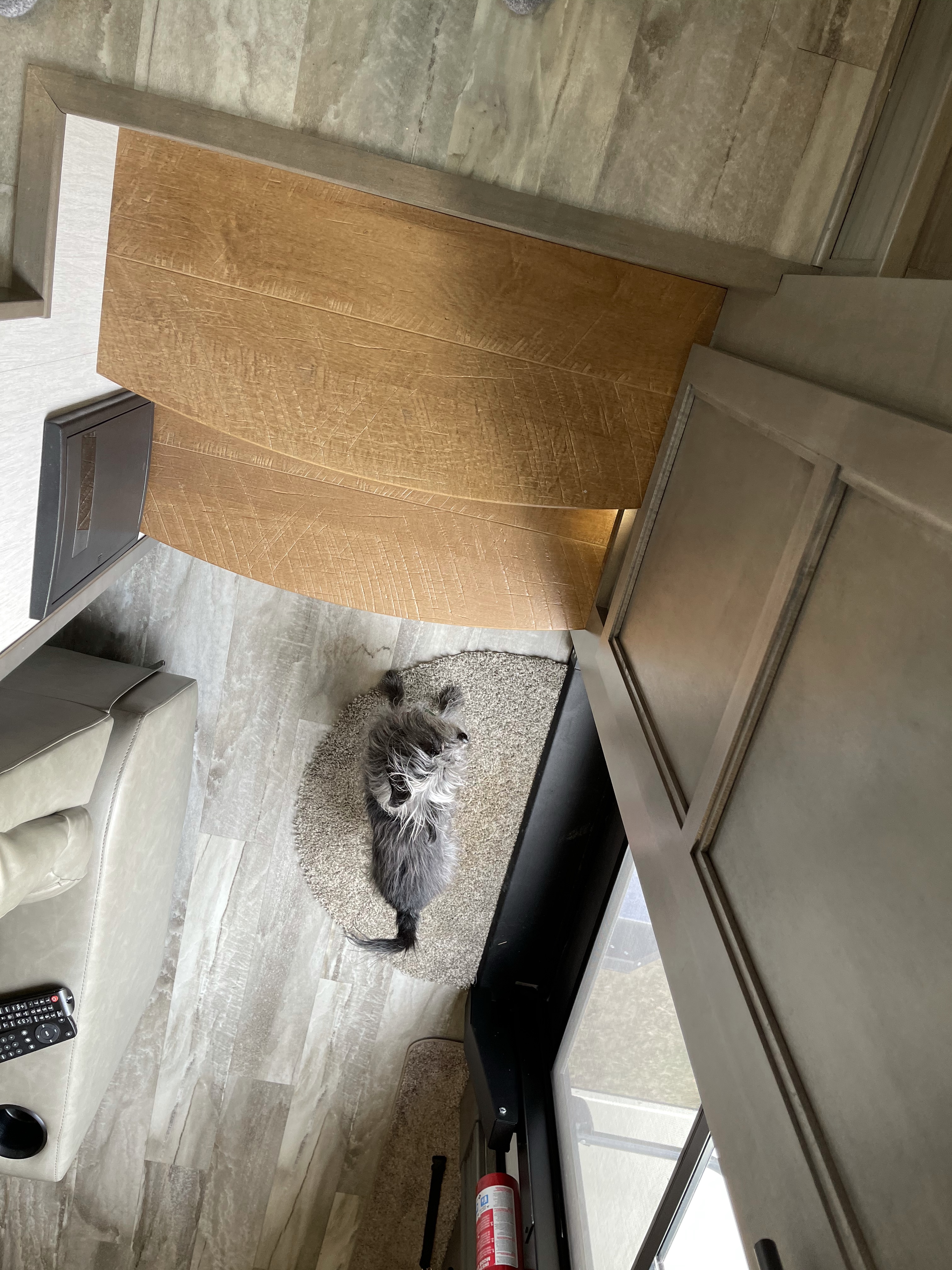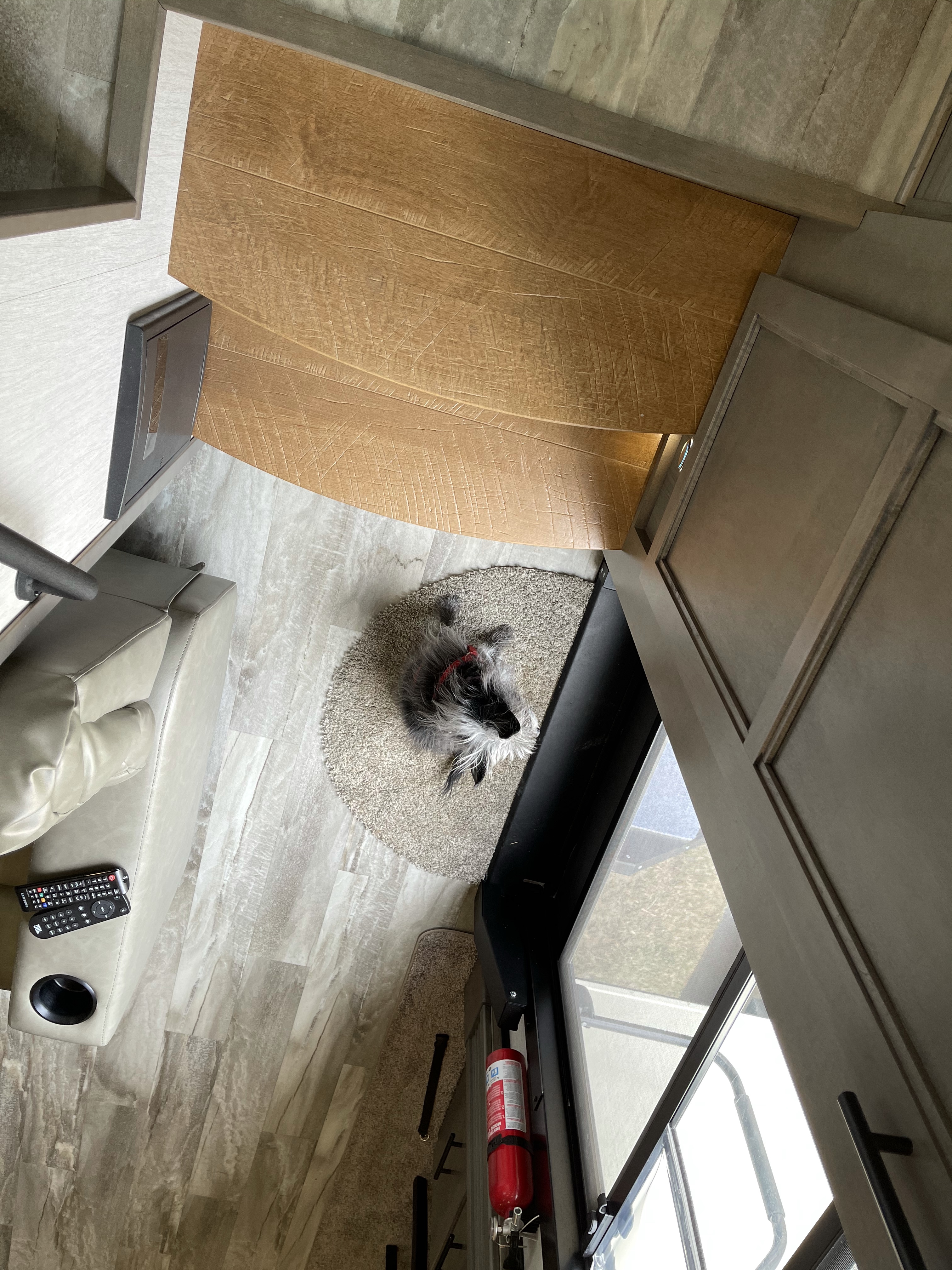 Later, Bruce opened the main RV door and left the screen door closed. Nox really enjoyed looking out through the screen door.