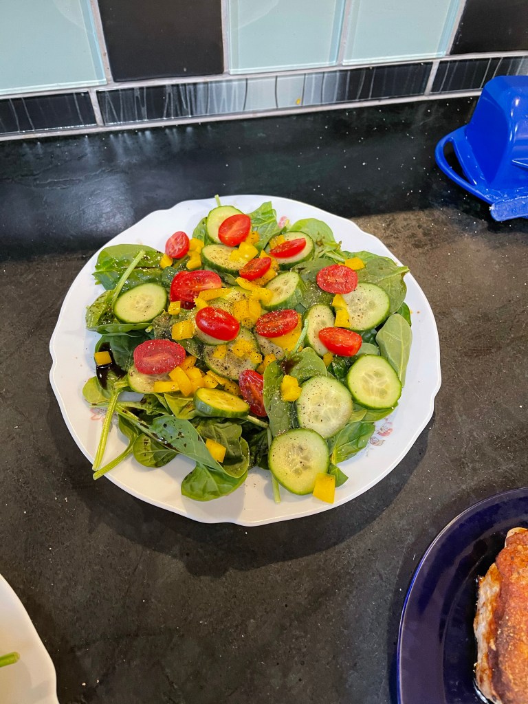 - 1/2 cup of cherry tomatoes, quartered (or at least cut in half)