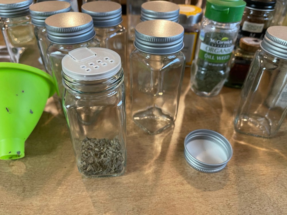 Since I’ve started doing most of my cooking in the RV, I’ve been bring over my herbs and spices. The herb and spice jars were different sizes and most of jars didn’t have labels on the lids.
