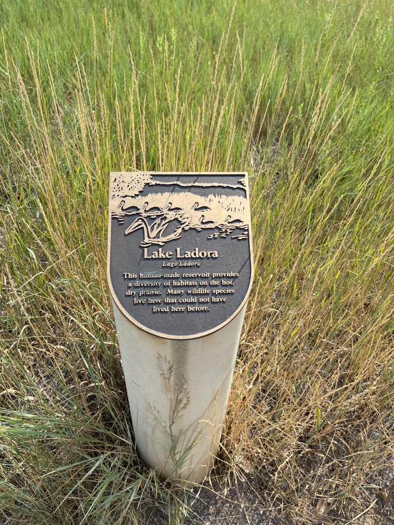 On the map, the Lake Ladora loop trail was 1.6 miles. It is a flat and very easy trail. We saw families with babies in strollers walking the trail.
