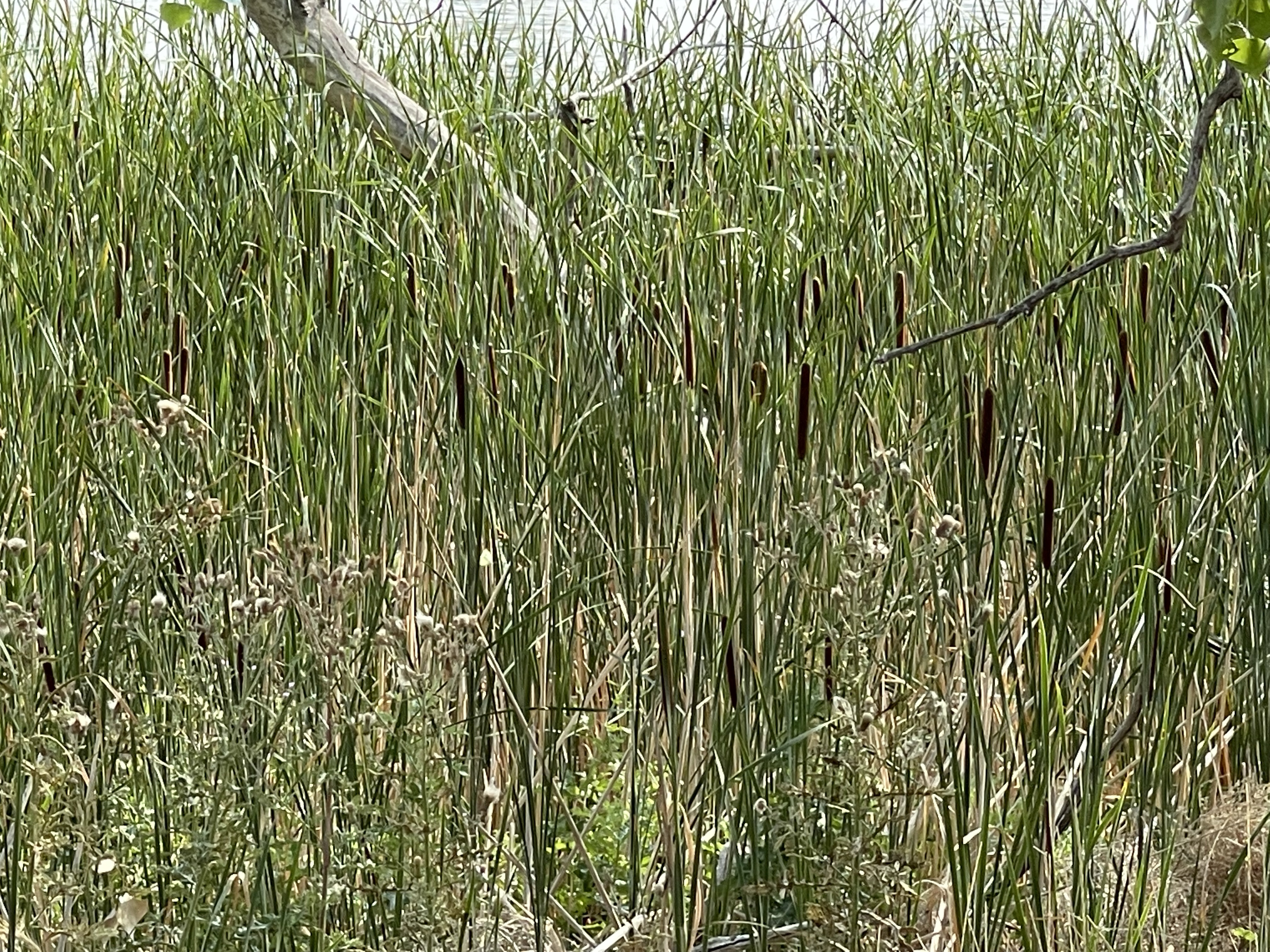 We crossed a narrow floating bridge as we walked back to our starting point. The cattail were several feet above our heads. I reached up my arm and the cattails were still a foot taller.
