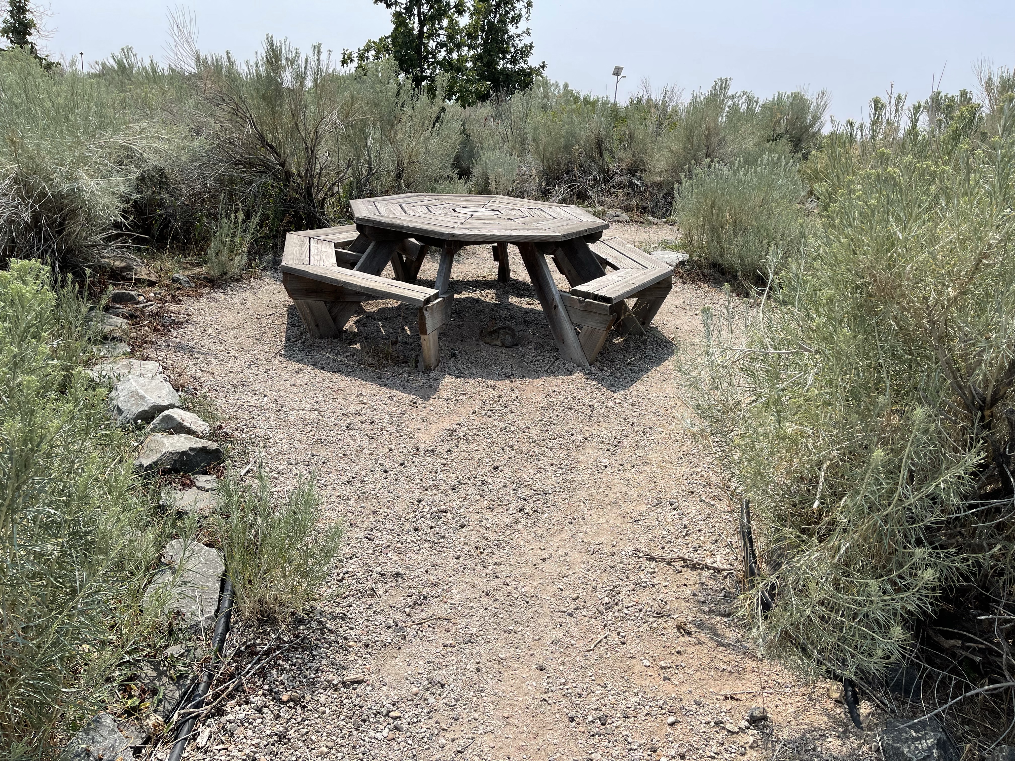 In looking at the map sign, it showed a garden behind the building. The garden was on top of a hill and it was more of a maze with picnic tables in it. We had great views from the garden. We could see prairie dogs running and hear them chirping.
