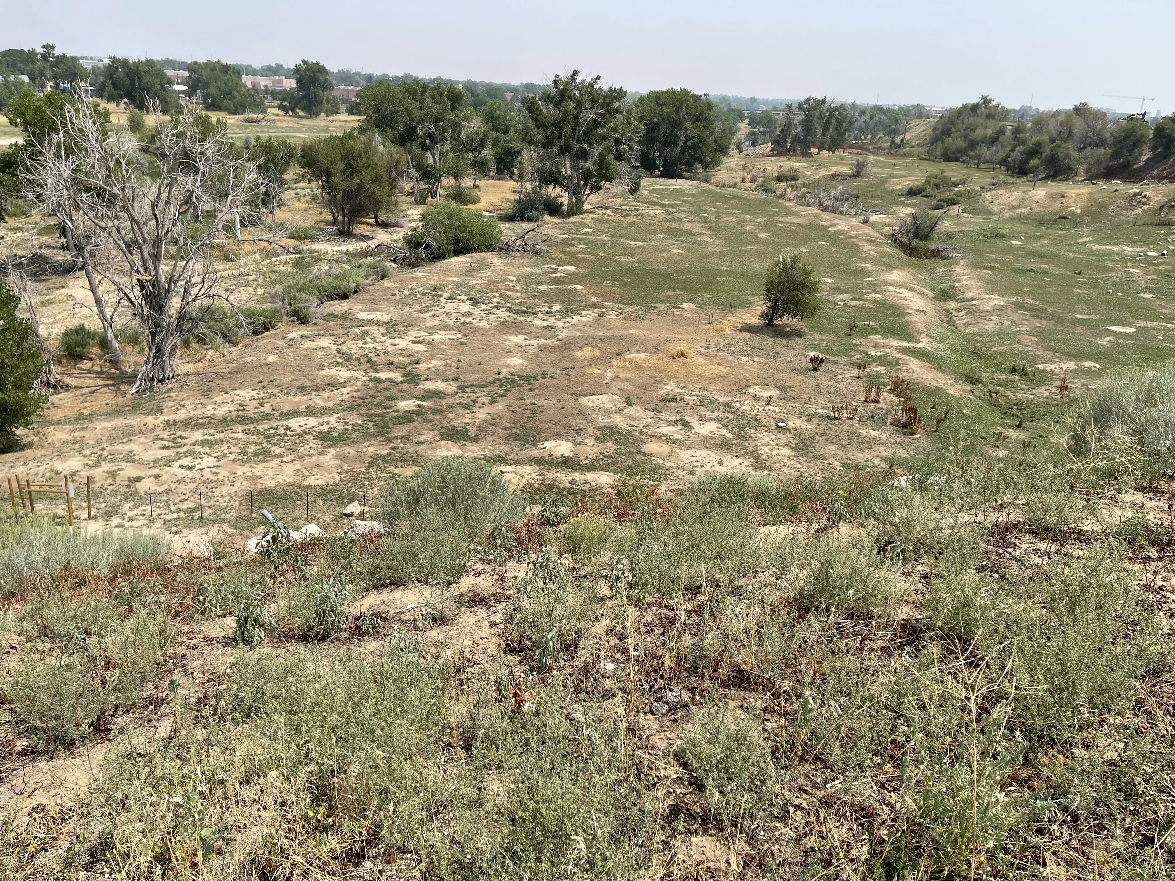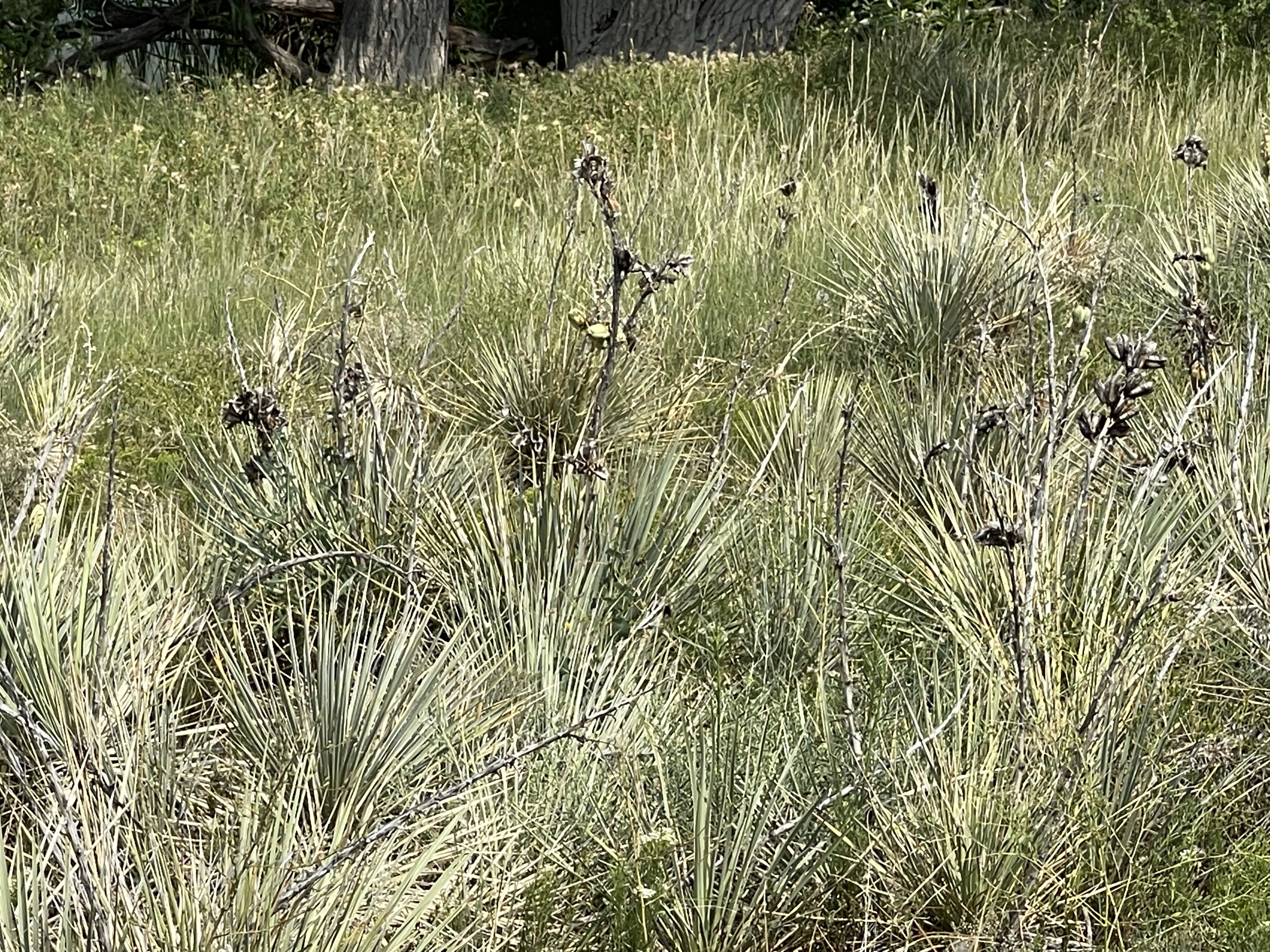 On part of the hillside, there is a lot of yucca plants and some cactus. The park has bat houses on poles.