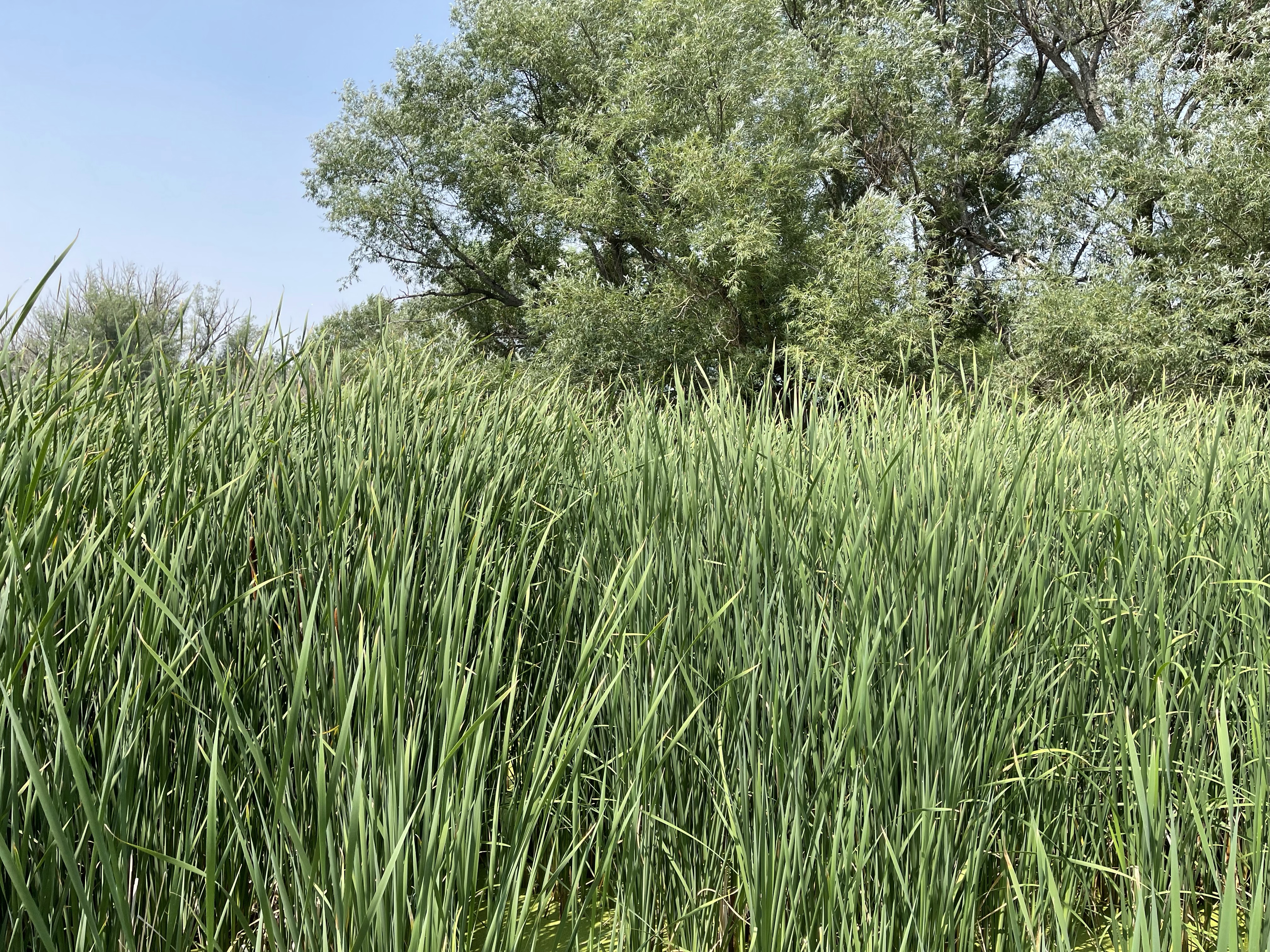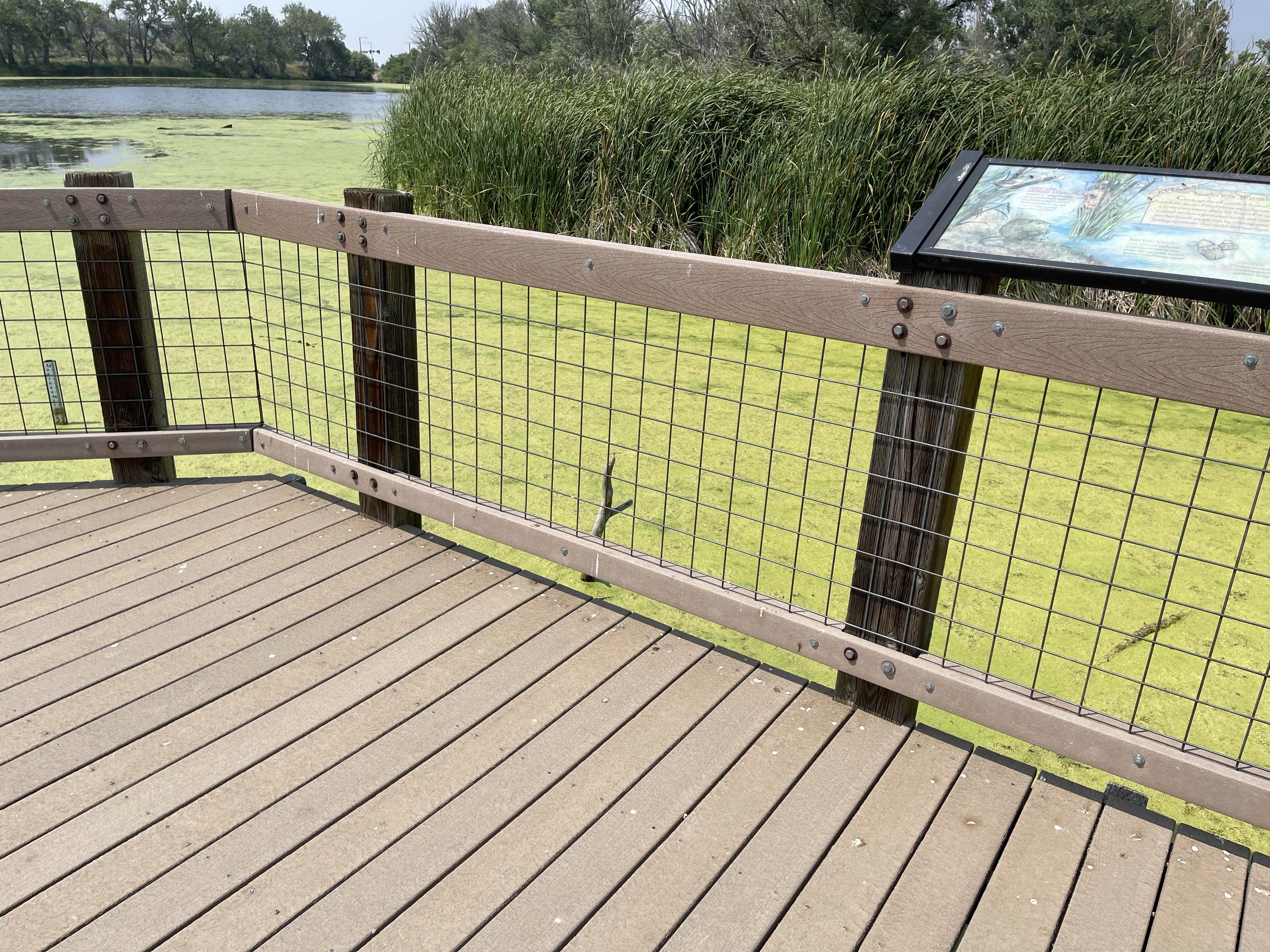 The pond has a boardwalk out over the pond, cutting into the cattails. There were lots of dragonflies.