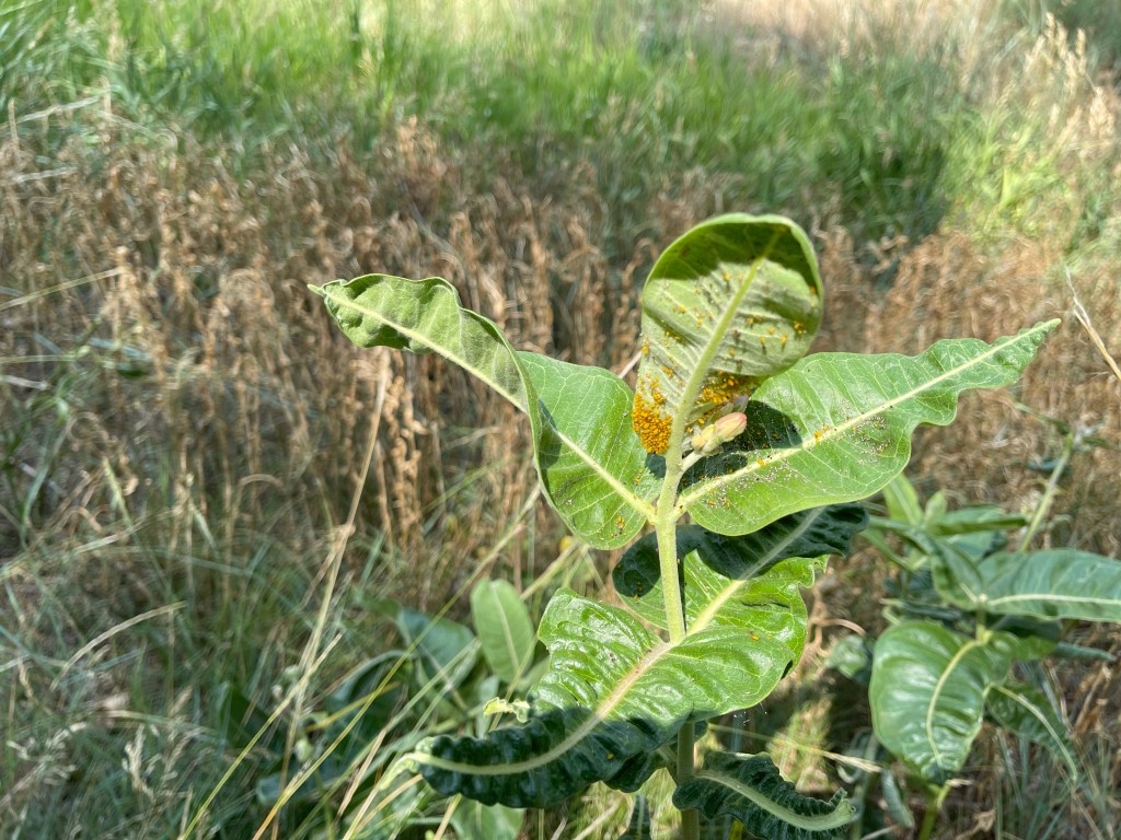 While there were many butterflies, I wasn’t able to get any pictures of them. I did get a picture of what I believe to be butterfly eggs on a milkweed leaf.