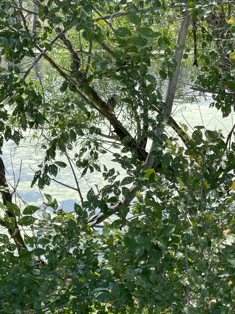 We saw two Belted Kingfishers, a male and a female. I spotted the male in the willow trees and I only saw the female when she took flight. She had been above the male in the tree.