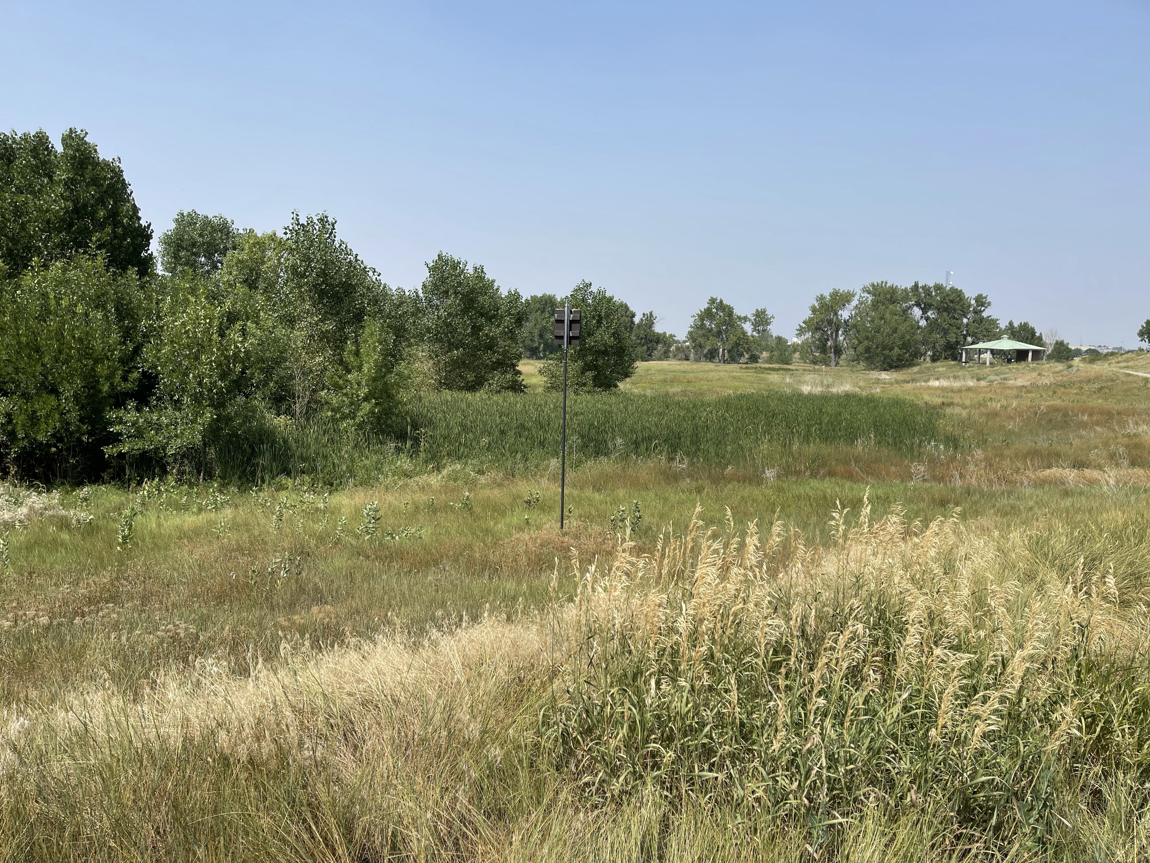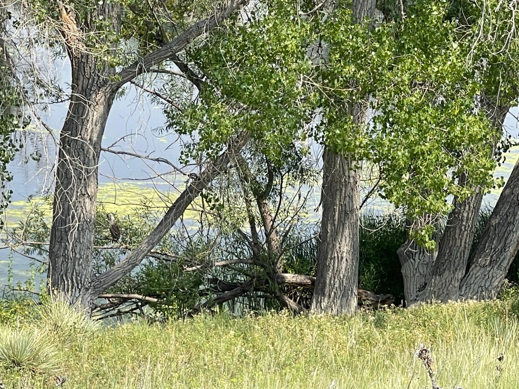 The park as a bird blind, which we stopped at. From the bird blind, using binoculars, we were able to see the new perching spot of the Belted Kingfishers.