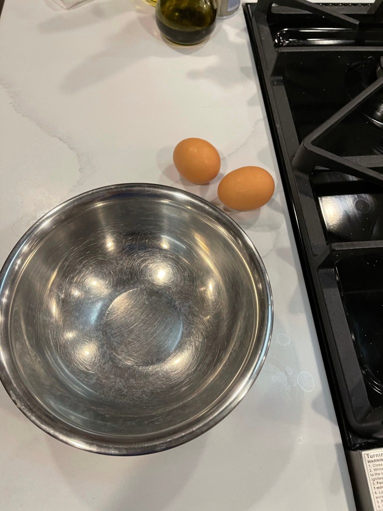 - 2 room temperature eggs (can be warmed in a bowl of hot tap water for 5 minutes)