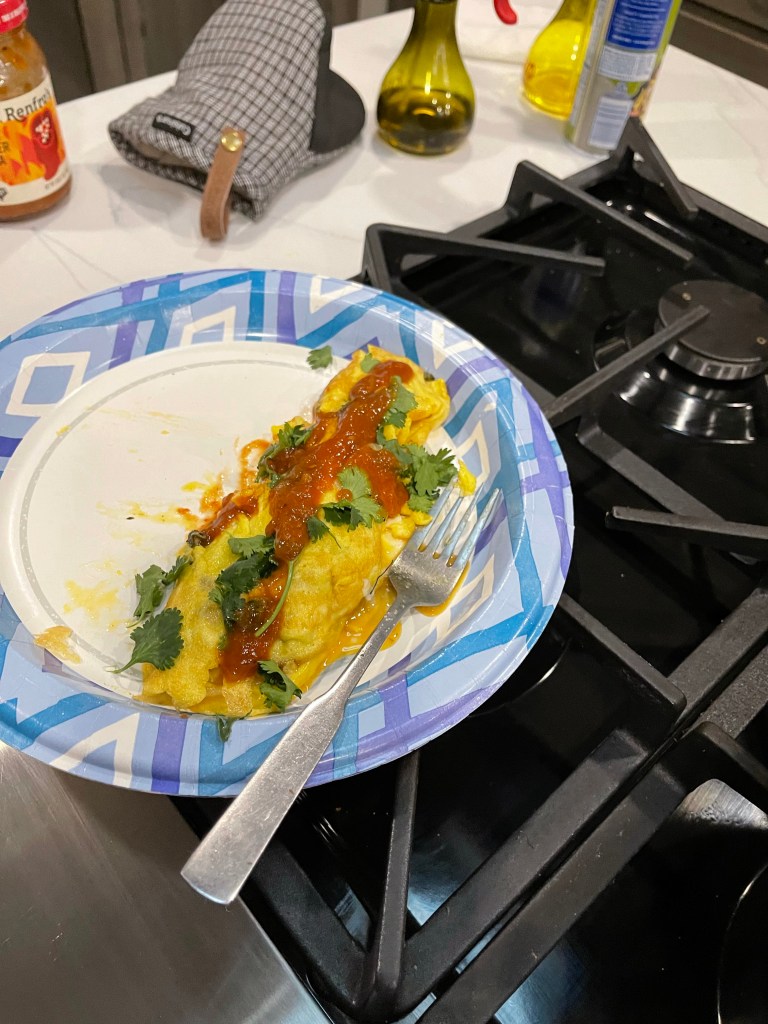 I’ve made prettier omelets, but Bruce assured me it was delicious.