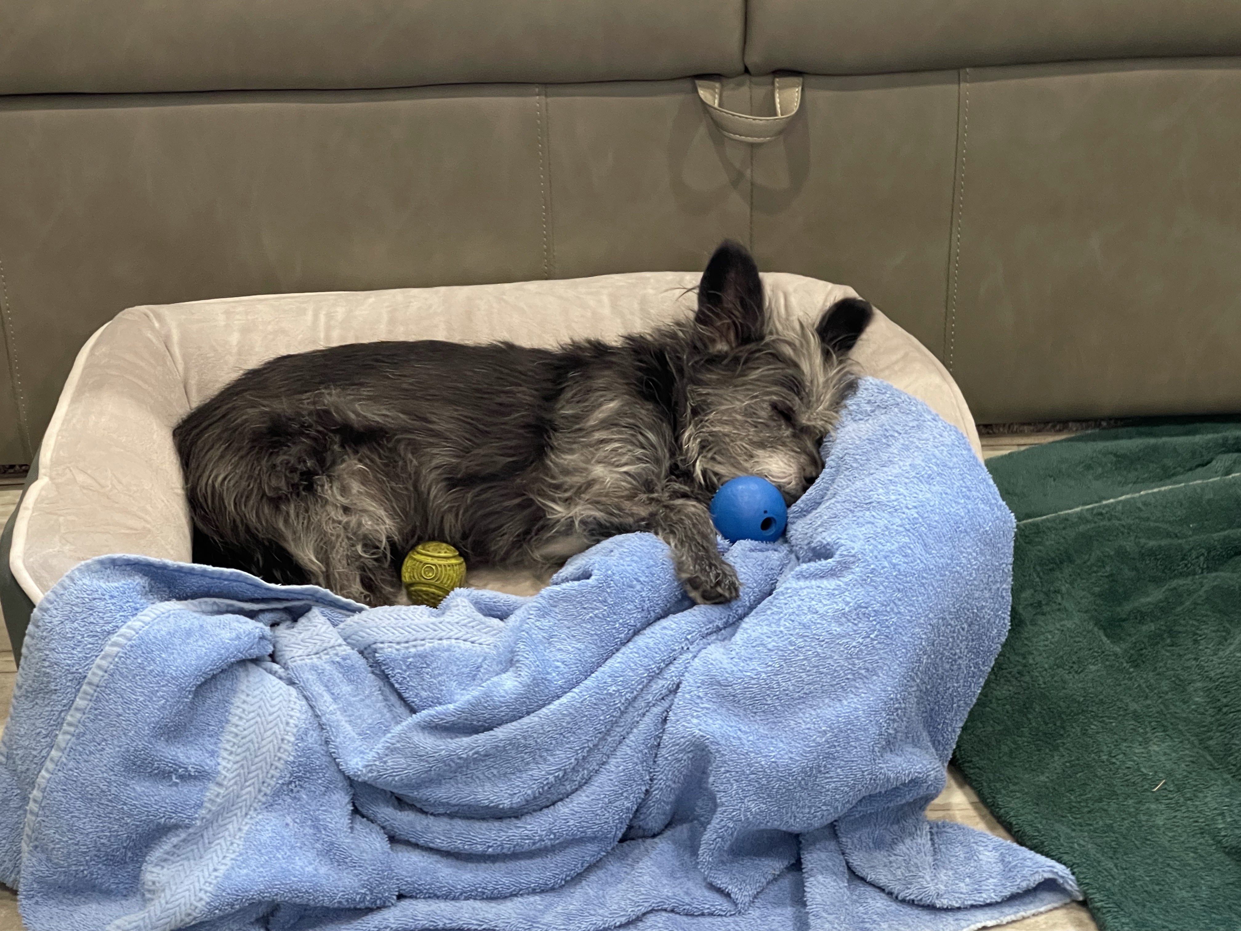 This is a behind the scenes look at the model Nox! She has to recover from all that walking!