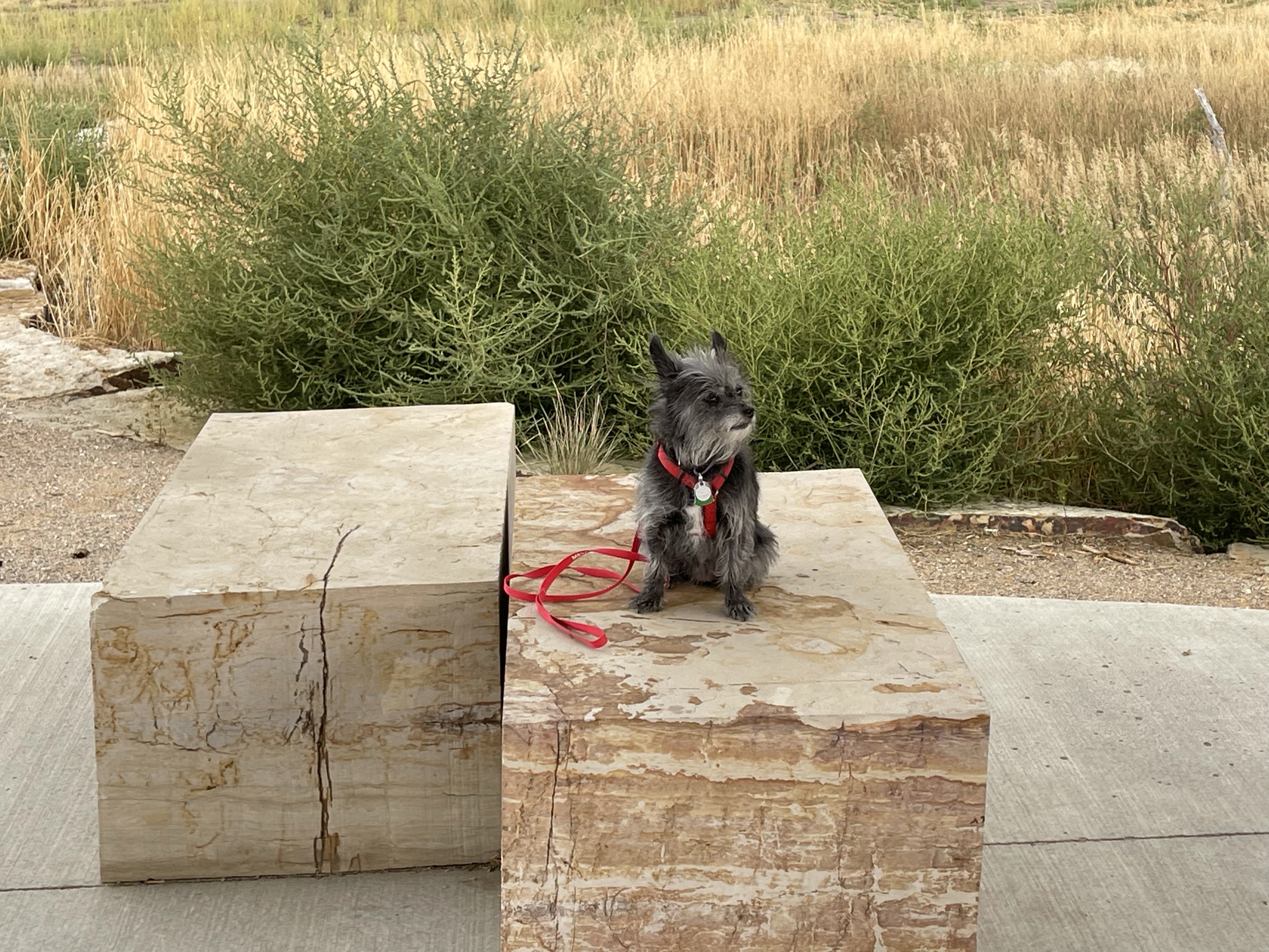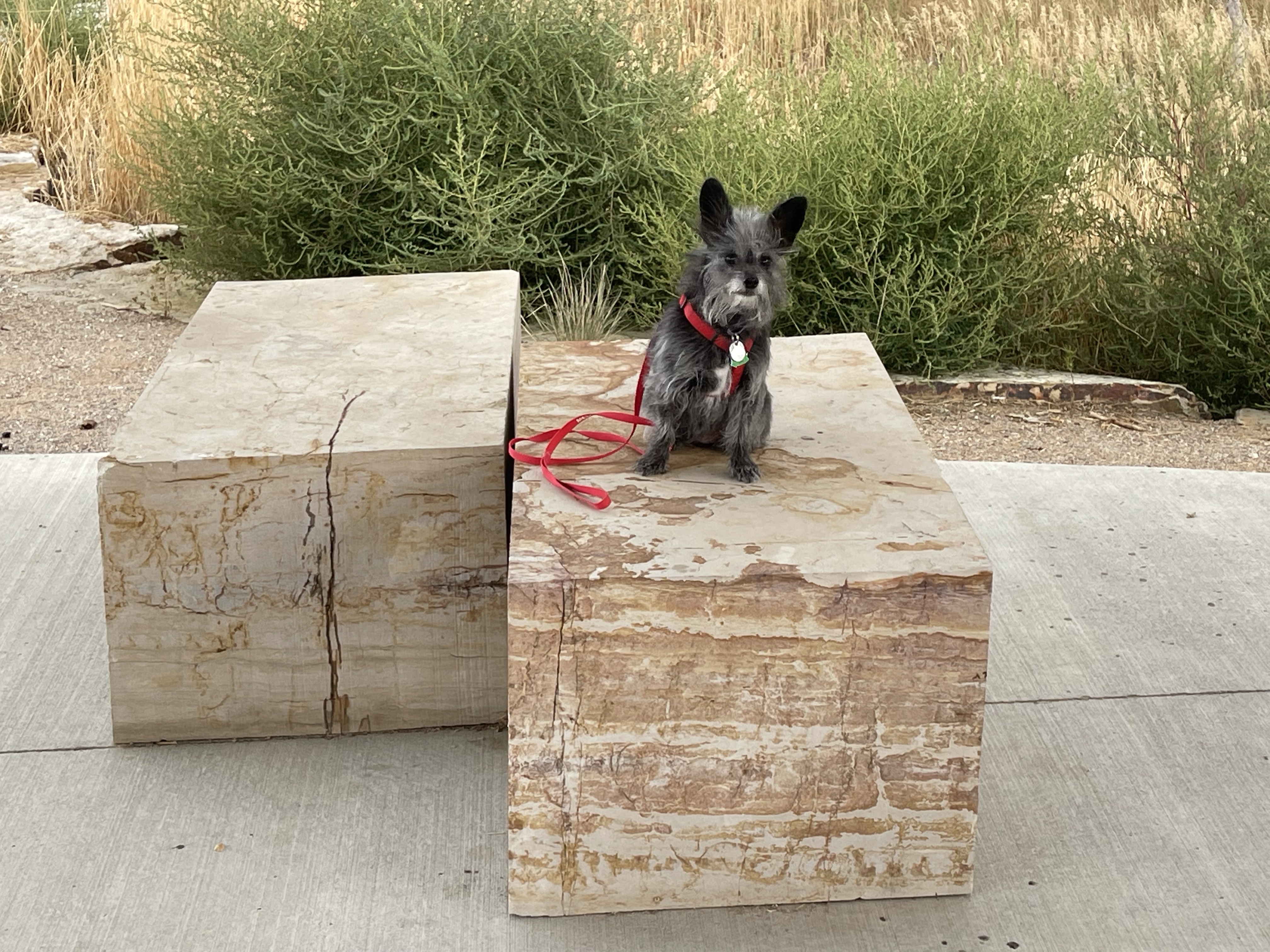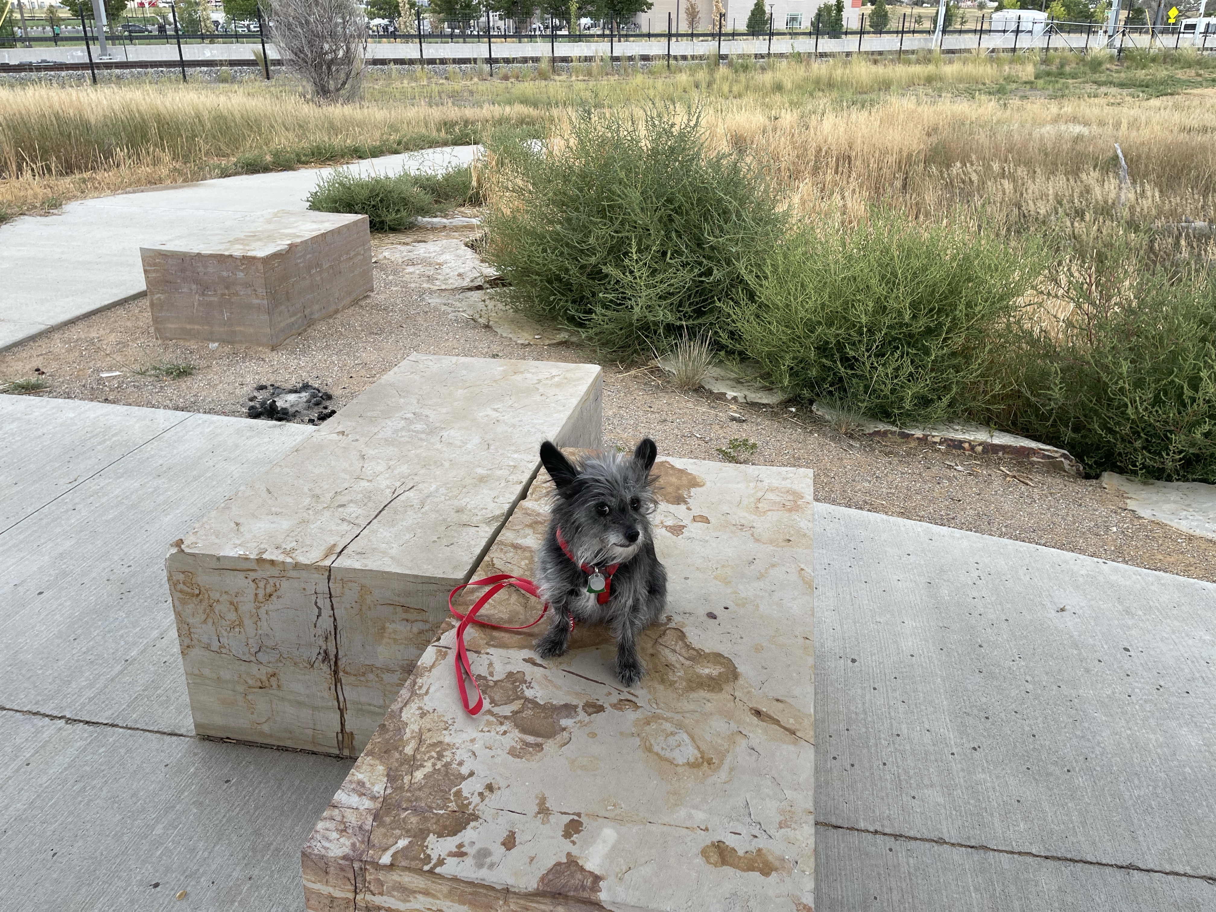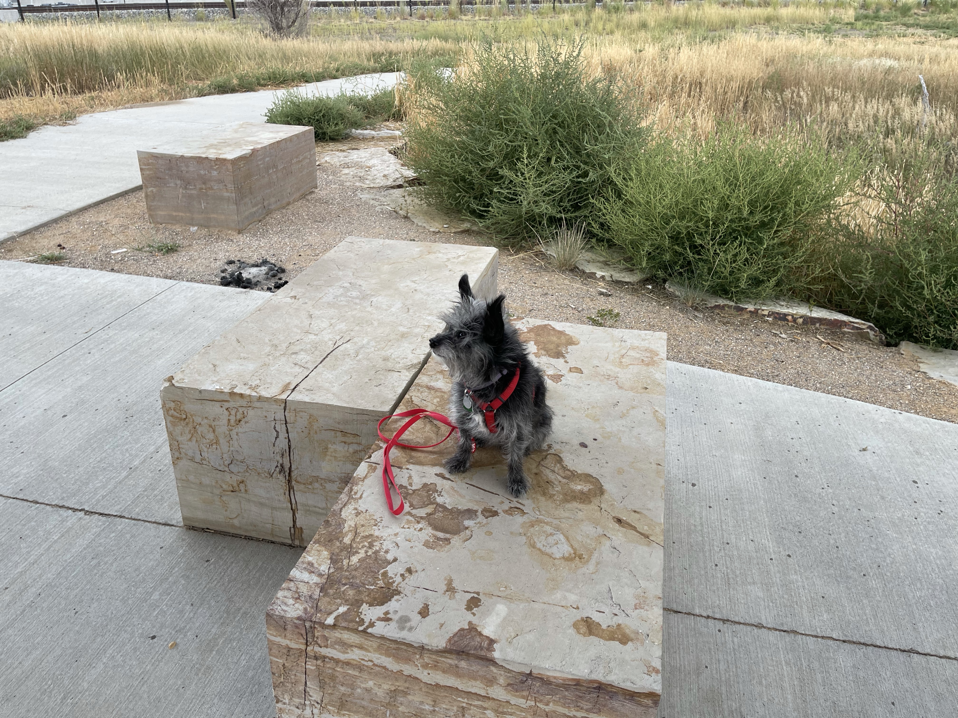 Yesterday, we took Nox on a walk at Sand Creek Park. At the picnic pavilion, there were some large rectangle stones.