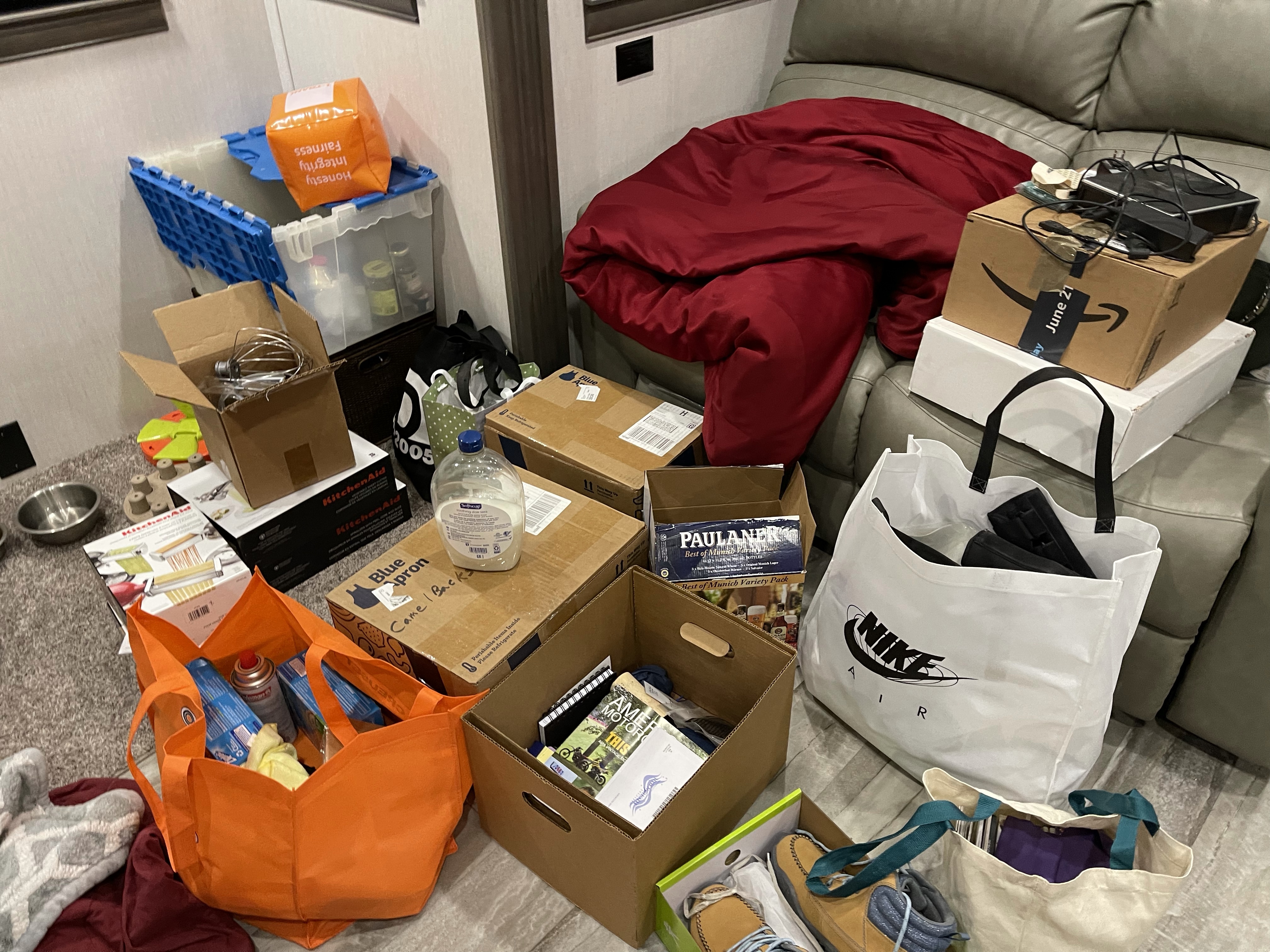 Some of the items we brought to the RV will go into storage, as we just don’t have room in the RV. The formerly uncluttered RV feels like a hoarder’s home right now.