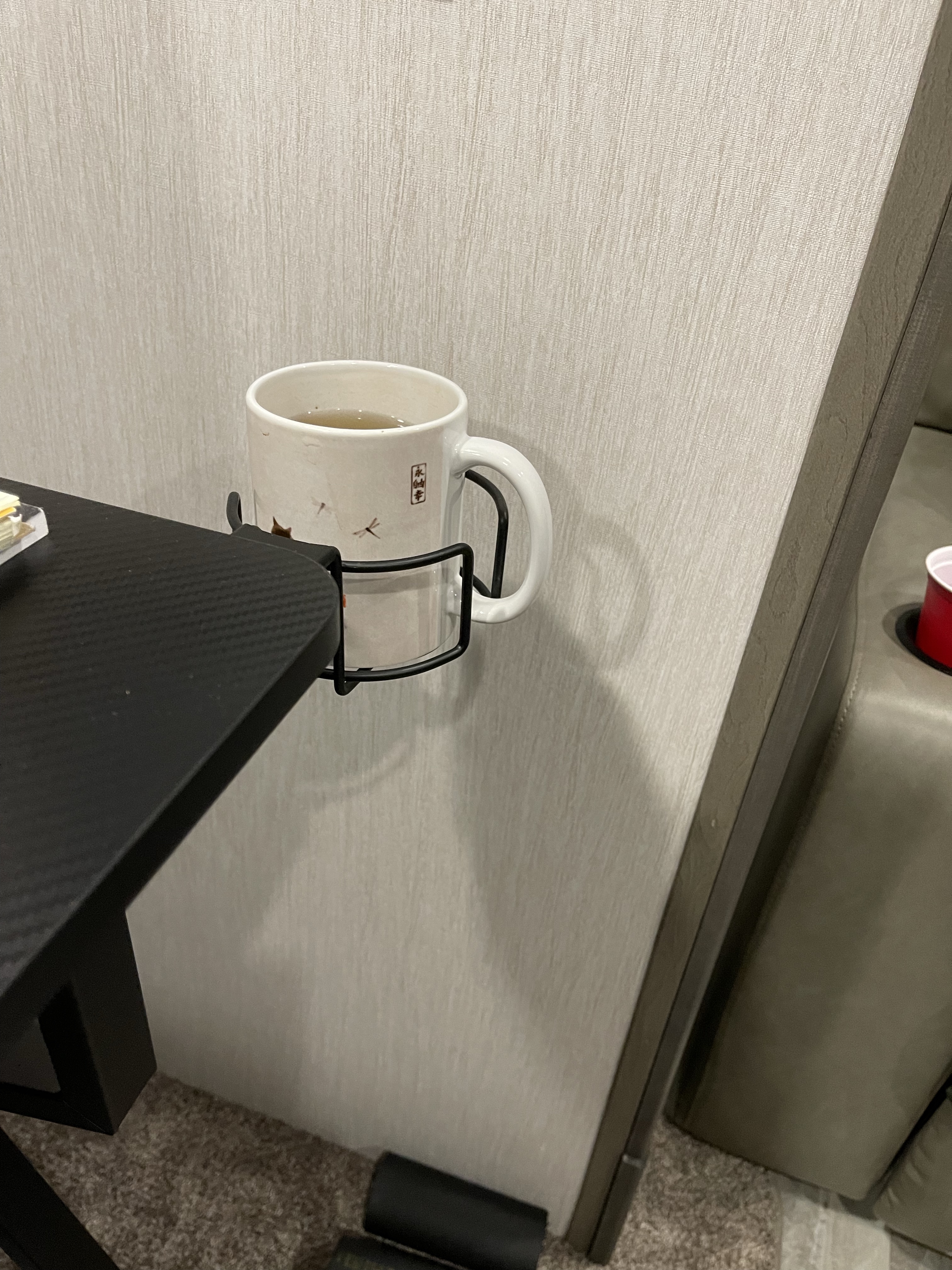 The cup holder was a great addition. I didn’t even think about it when we ordered the desk. I was focused on enough space for Nox and enough space for me. I also wanted something that would blend in with the RV decor.
