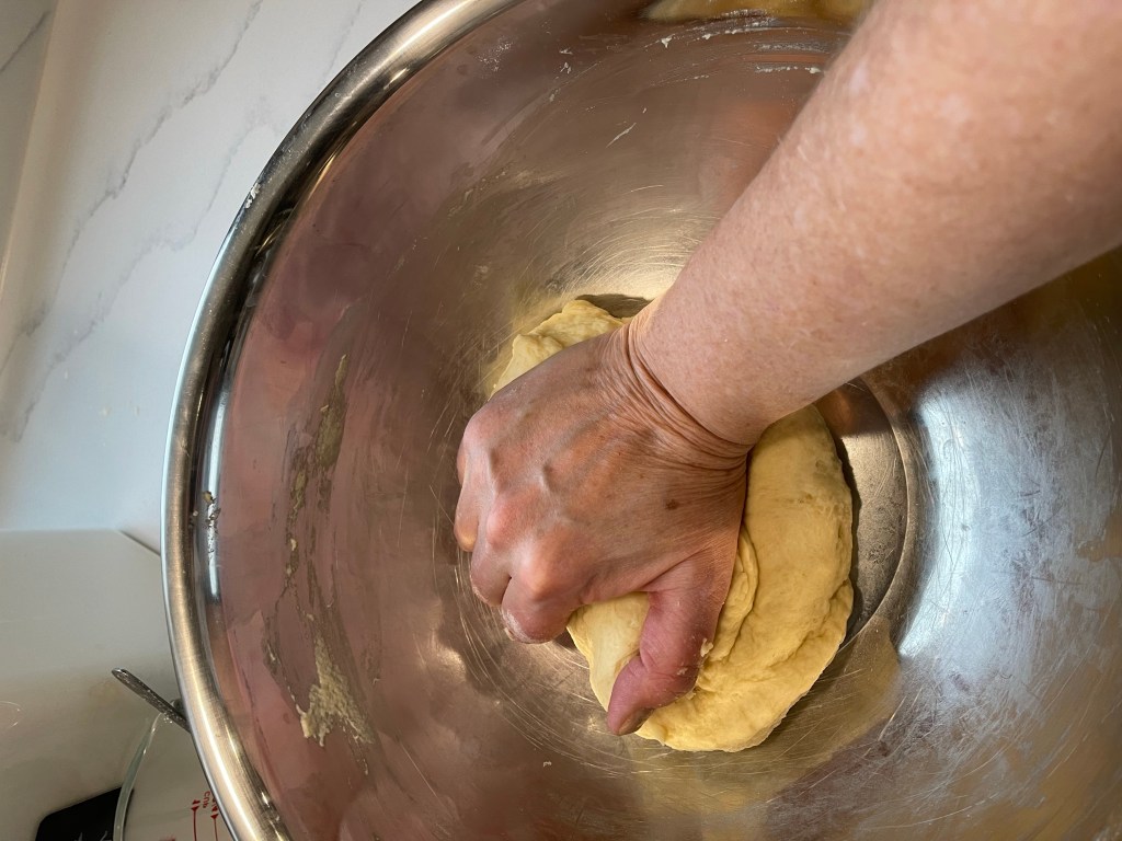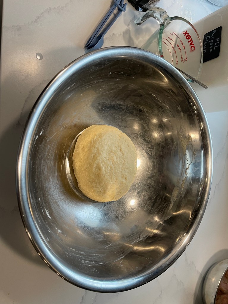 - Place kneaded dough back into the medium size bowl and cover with a plastic wrap or a plate, if the plate will cover the bowl. (That’s right, I don’t oil the bowl or dough.)