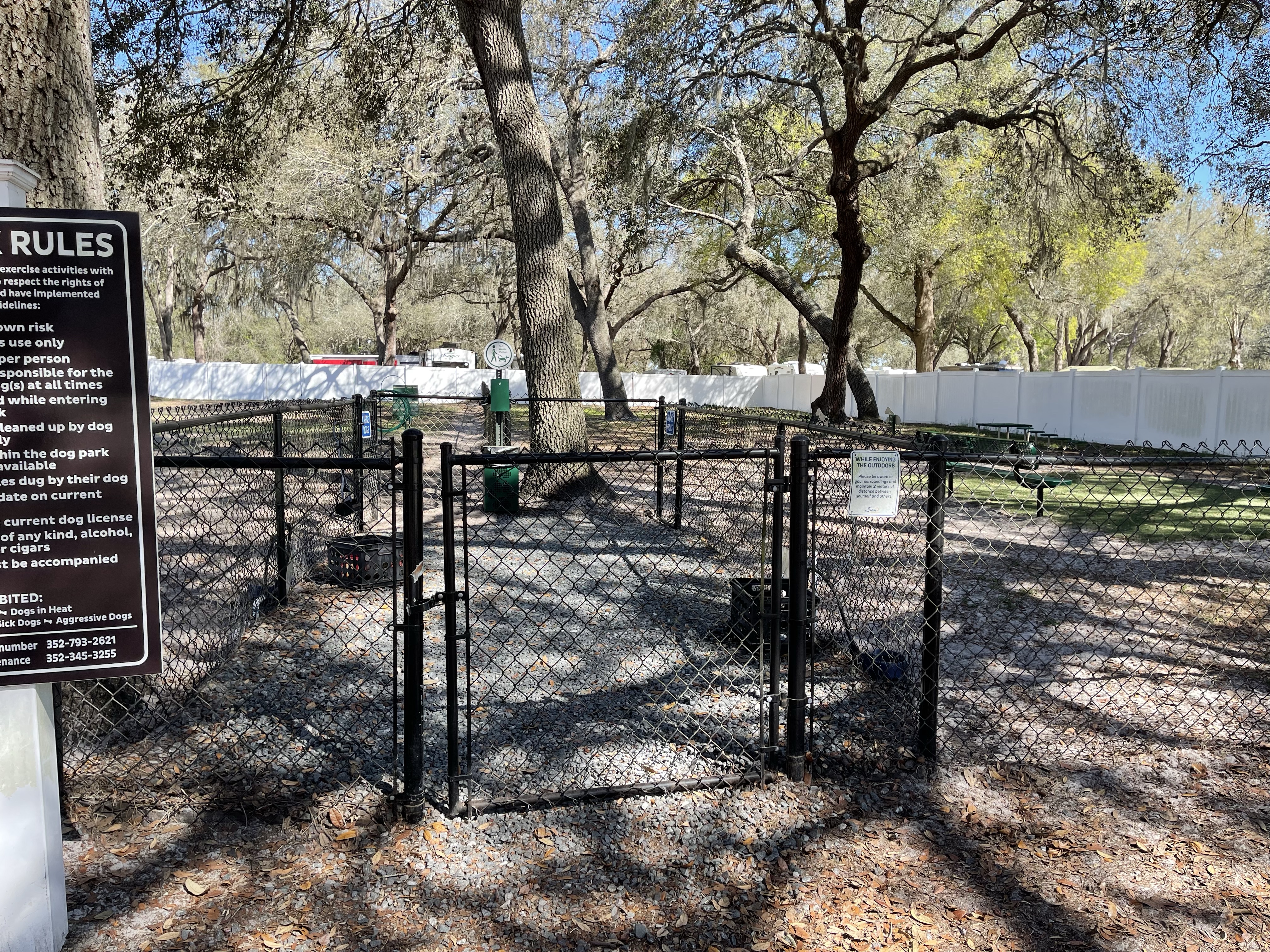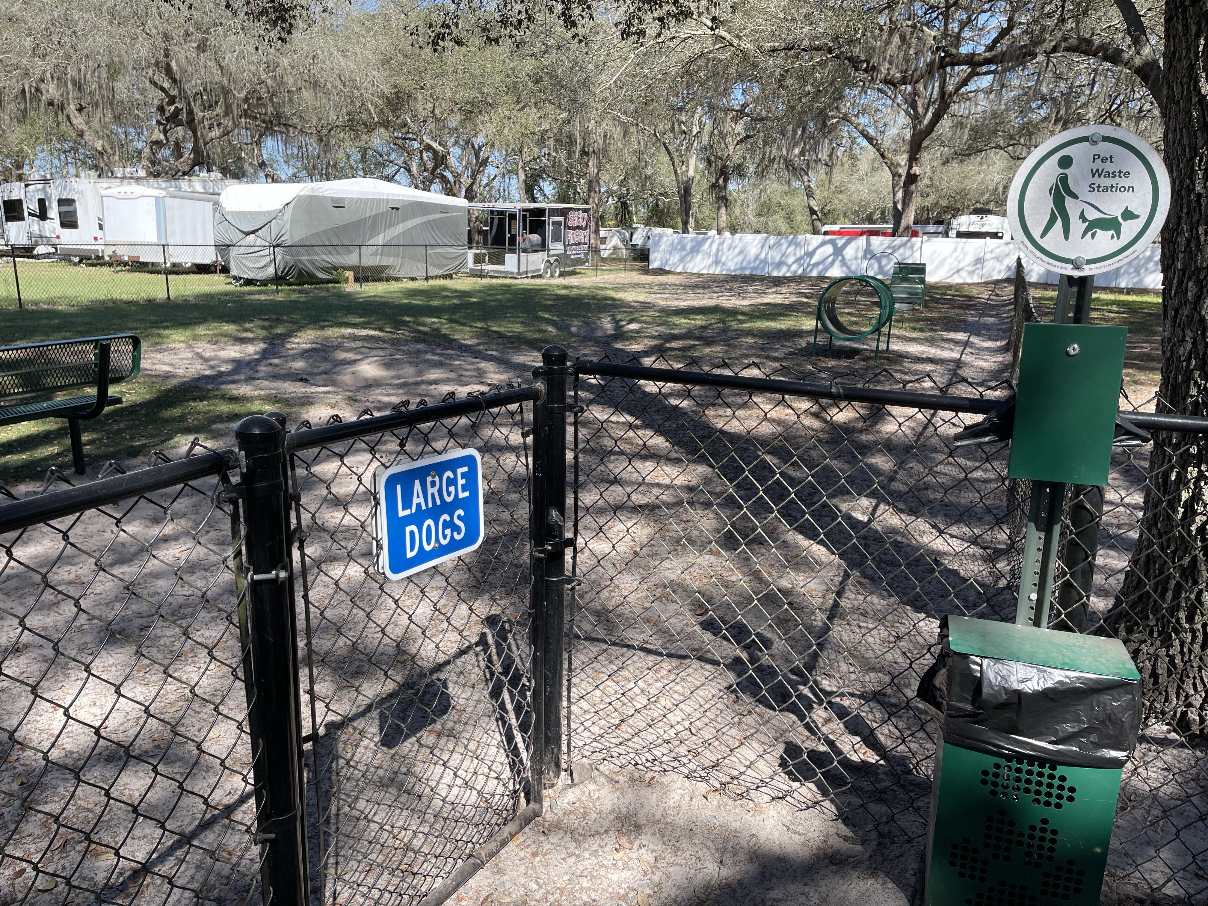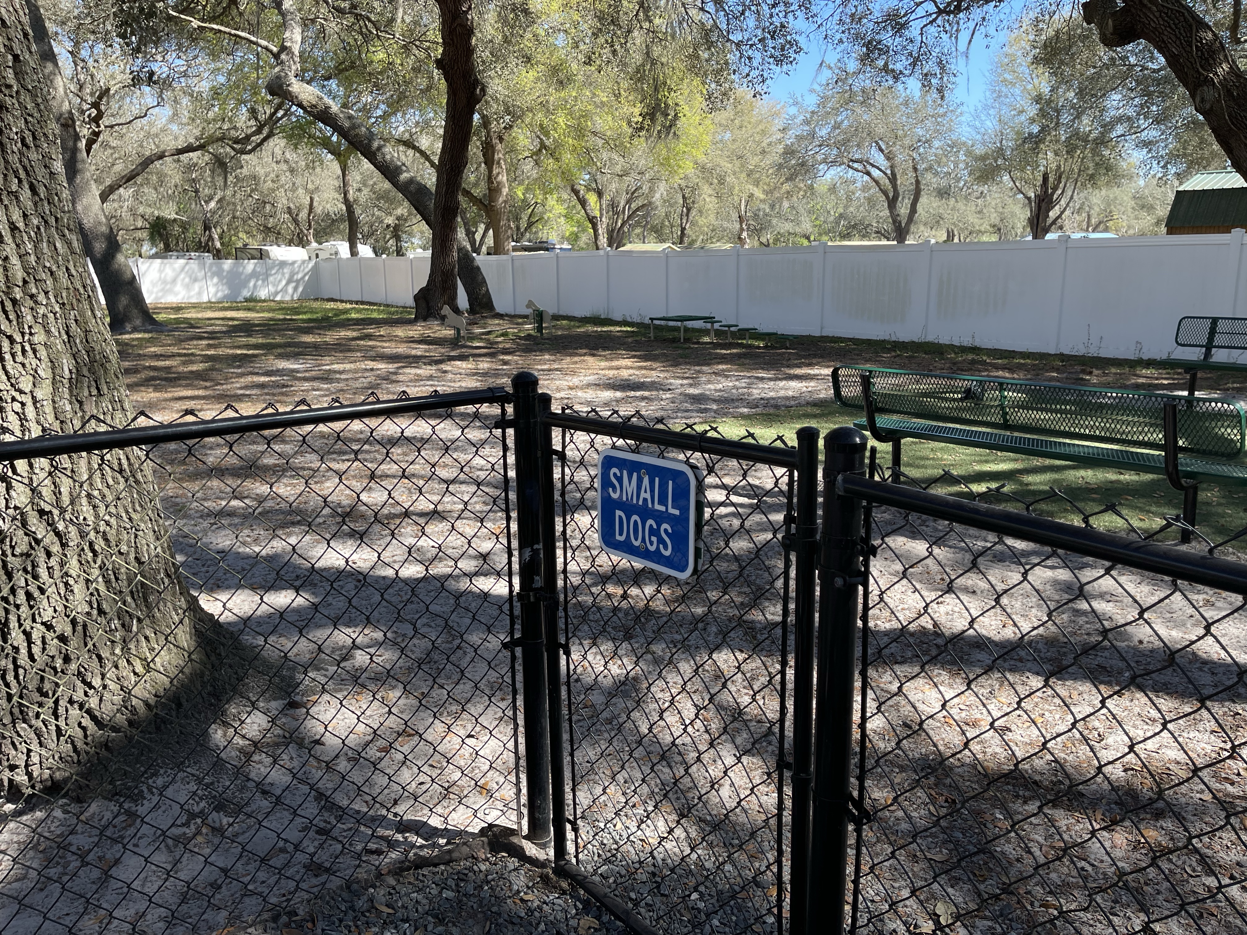 Yesterday, we walked to the close dog park in Red Oaks RV Resort (Bushnell, Florida). We keep her in the small dogs section.