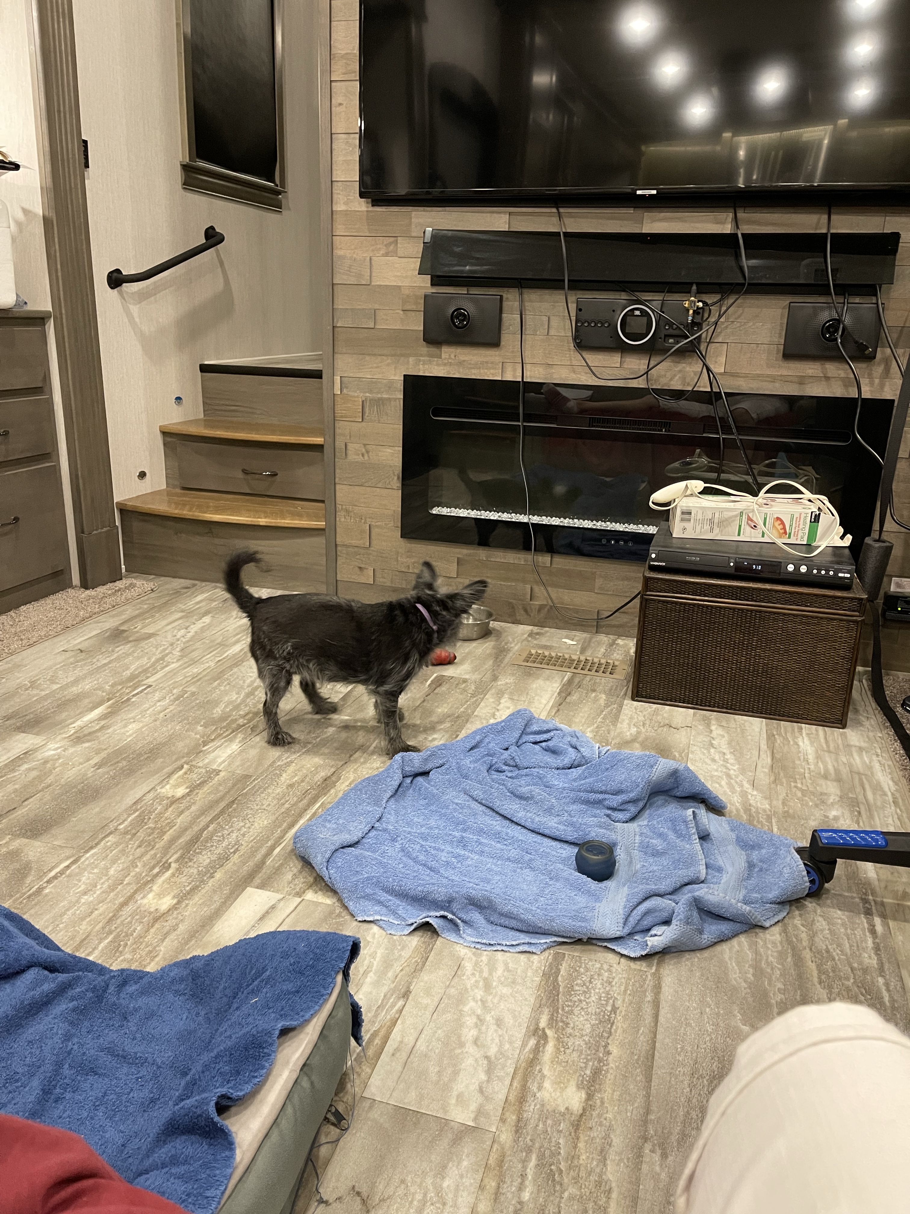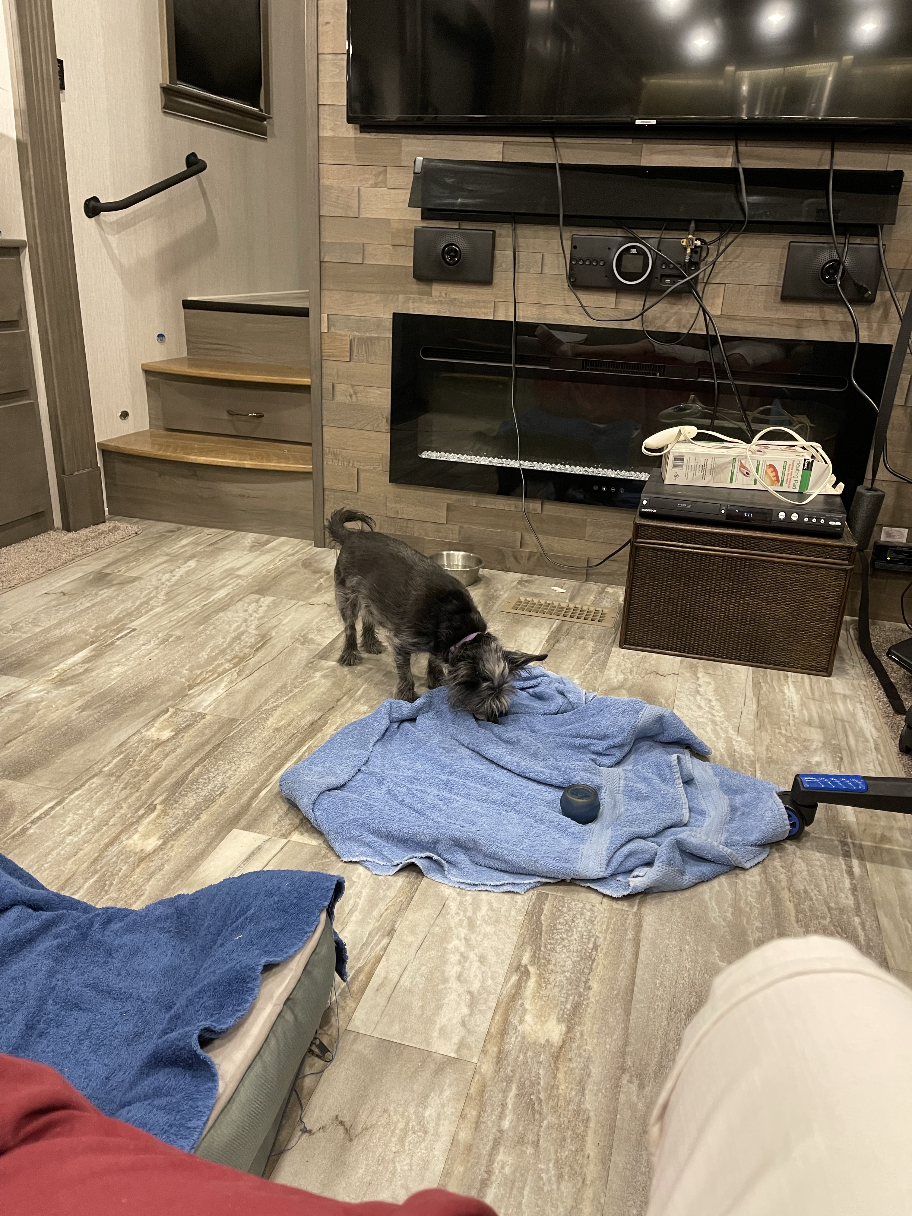 Later, Nox spread one of her towels out in the middle of the living room. She laid on it and went to sleep.