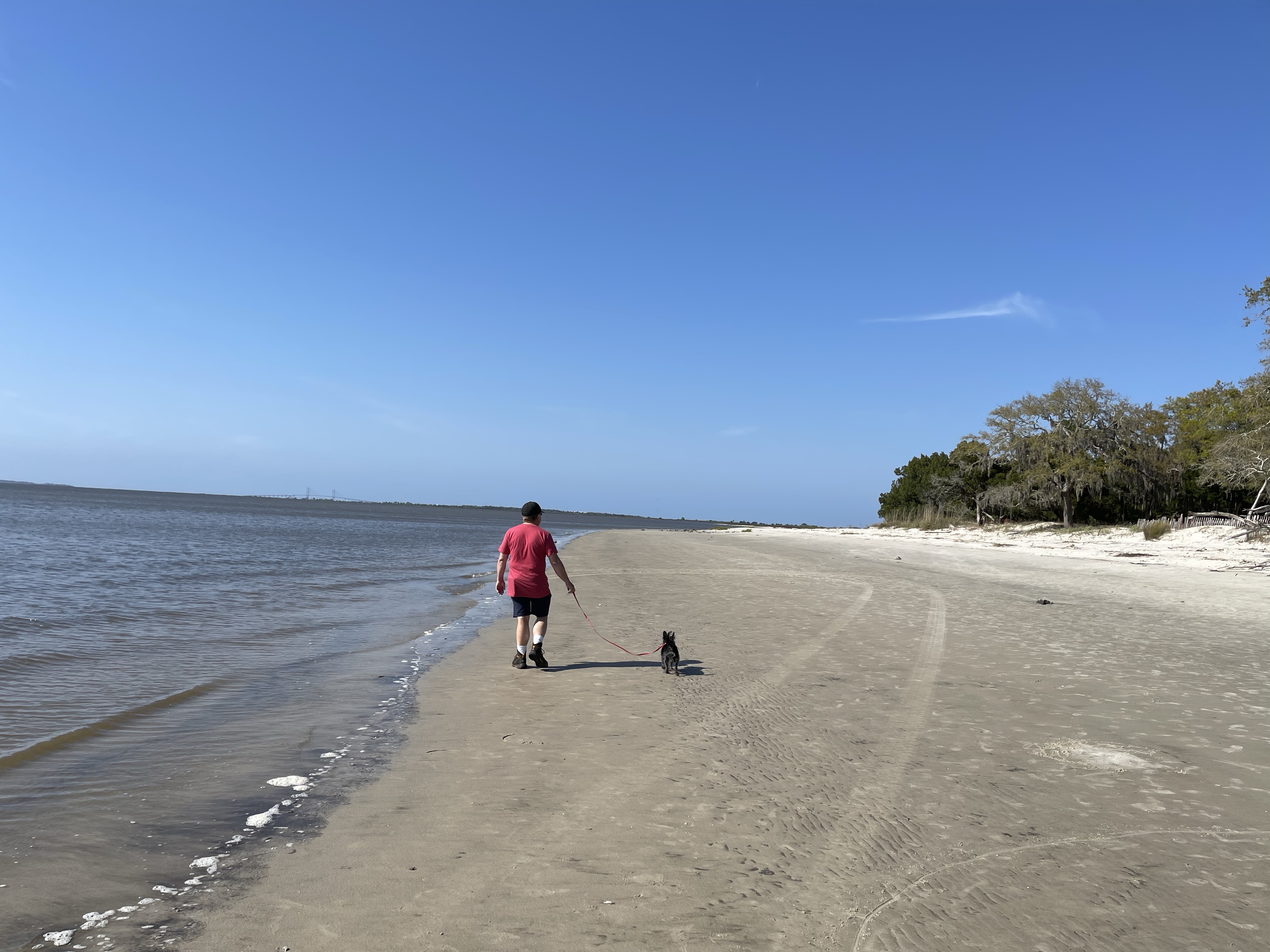 Saint Andrews beach is on the river side of Jekyll Island on the Jekyll River. it is dog friendly, so Nox came with us.