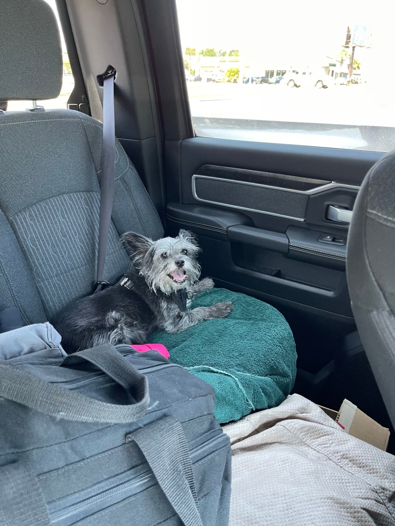 I took Nox for a quick walk while Bruce put fuel into the truck. I am glad Nox is a champion traveler. She doesn’t get sick and lays about sleeping most of the trip. She is always glad to get out and stretch her legs and do Nox things when we stop.