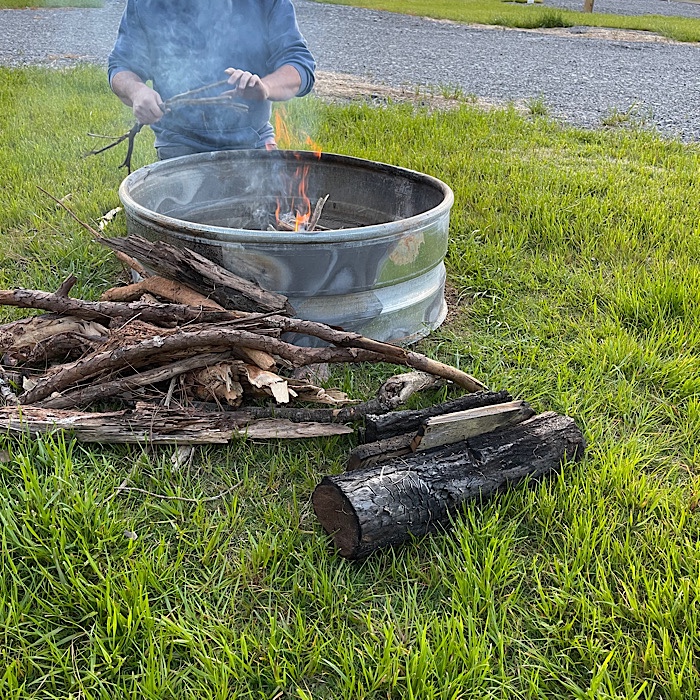 Bruce convinced me and while the sun sat, Bruce started the campfire.