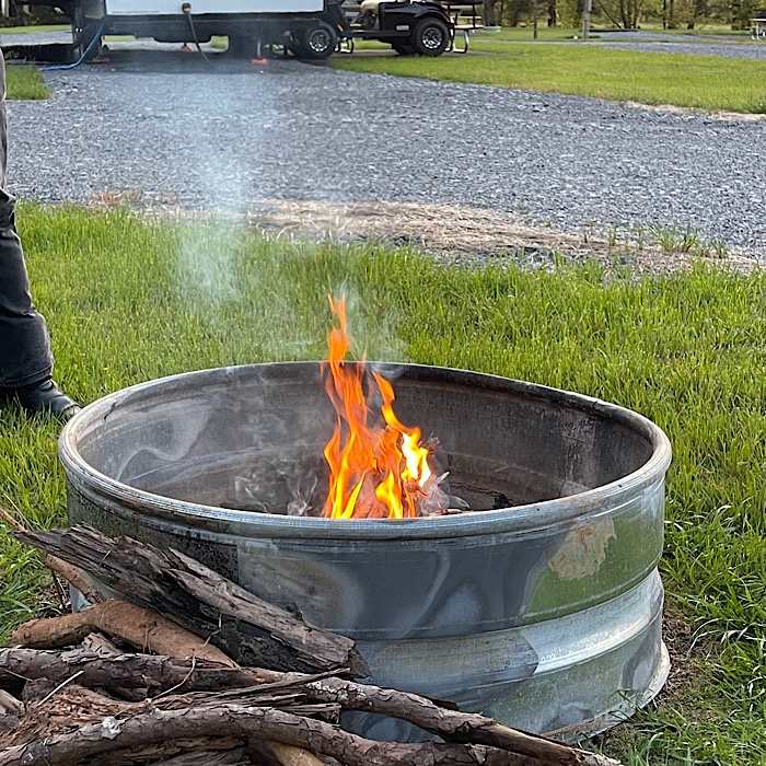 When we got back to the campground, Bruce started talking about a campfire. I was a bit hesitant at first, thinking it was a bit cool to sit out.