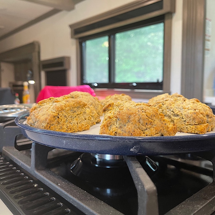- Bake until the scones are deep golden brown, 27 to 30 minutes, rotating the baking sheet halfway through. If using a convection oven, you don’t need to rotate.