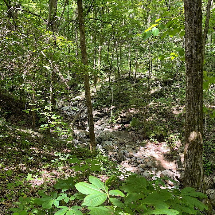 When we got down to the bottom of the trail, the creek bed was dry and full of rocks.