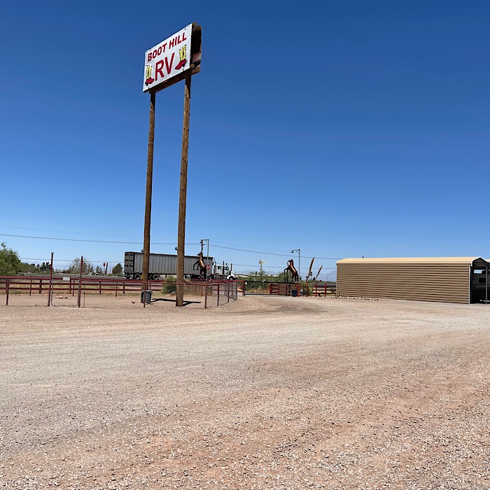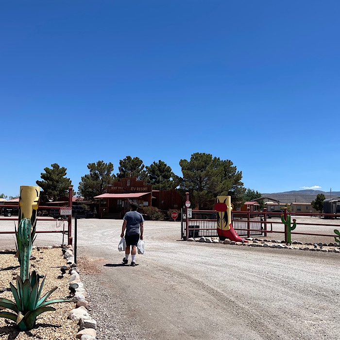 Boot Hill RV Park was all gravel, which is what you expect in the desert. There were some trees, they aren’t big enough to provide shade. The campsites are close together and long pull through sites with full hookups. The campsites are fairly level. We had no problems with the power. The water did not taste good, but that was not something the park could change, as it was city water.