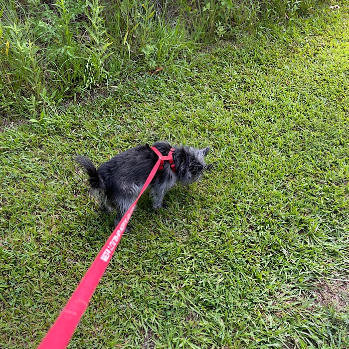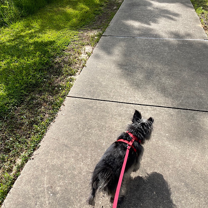 Nox enjoyed her walk and had a great time smelling all the new smells.