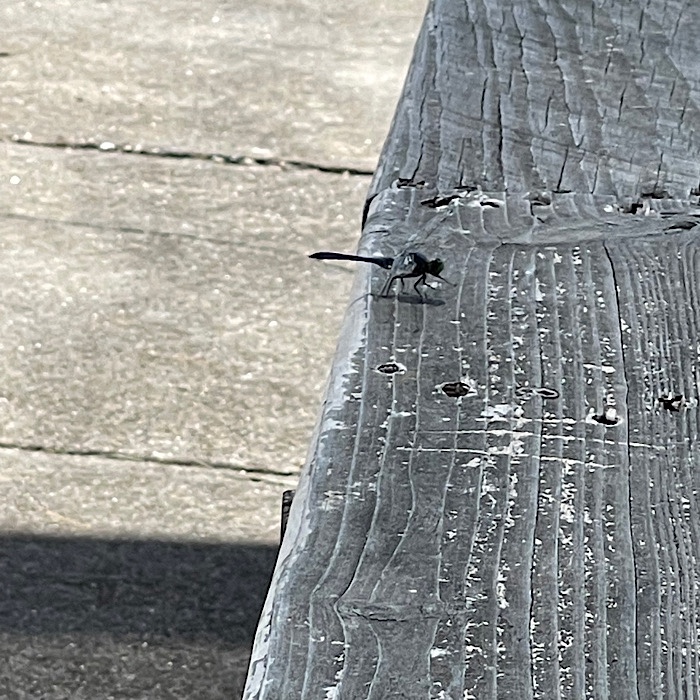 We stopped at the Contact Station to rest in the shade. The dazzle of dragonflies entertained us while we drank water and cooled down in the shade.