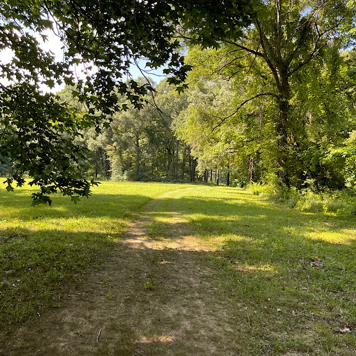 On the way to Station 12, we saw a raccoon. Station 12 was a borrow pit. There was a low depression formed by borrowing dirt to build the earthworks. It was easier to see the ridges here amongst the trees. This section hadn’t been farmed as much, leading to less soil erosion. The picture I took doesn’t look like anything. I am just going to show you the path from Station 10 to Station 12.