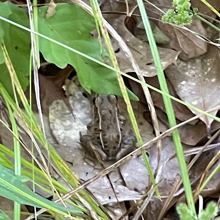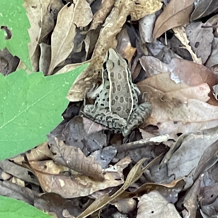 We saw a couple of frogs. Once the frogs hopped out of the path, they were almost impossible to see in the brown leaves. We also saw a couple of egrets, but I wasn’t able to get a picture of them.