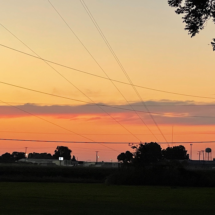 I put her harness on her and Bruce carried Nox down the steps. The sky was beautiful.