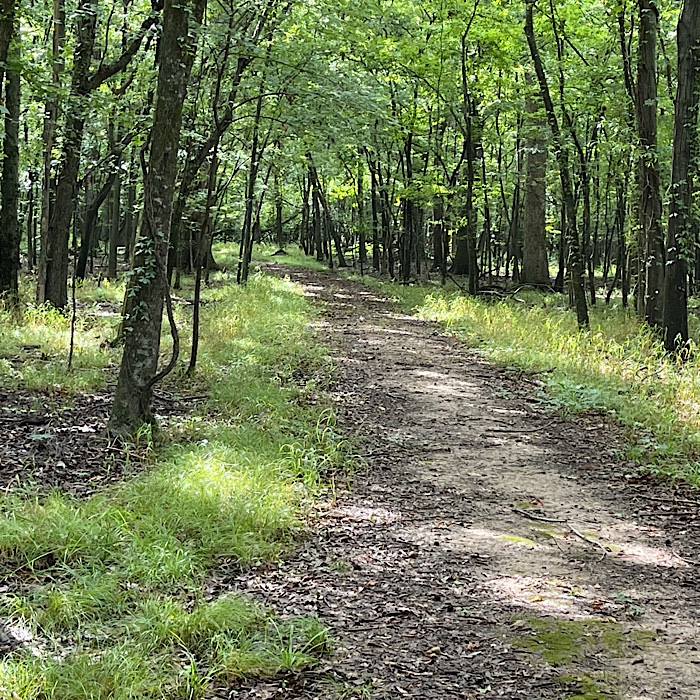 We wound up paying so much attention to where we were stepping to avoid poison ivy/oak and trying to keep Nox out of more poison ivy/oak, that we couldn’t look at the woods. We would occasionally stop and look at our surroundings to enjoy the woods.