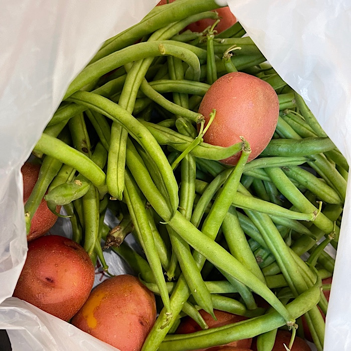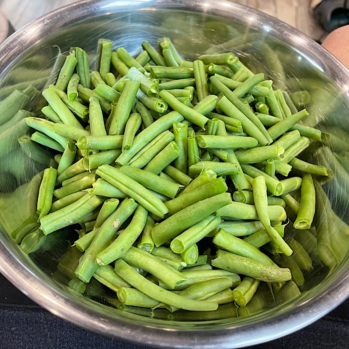 When we got home, I snapped the green beans and got them ready to cook.