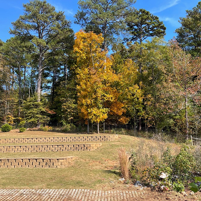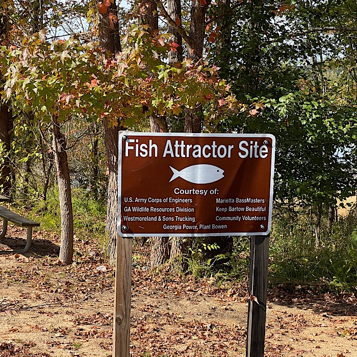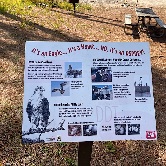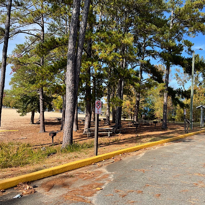 We walked back to the road split and headed to the right. This area has toilets, picnic tables, and a beach. In the summer, it has a swimming area. They have drained a good bit of Lake Allatoona for flood control, so it is low right now.