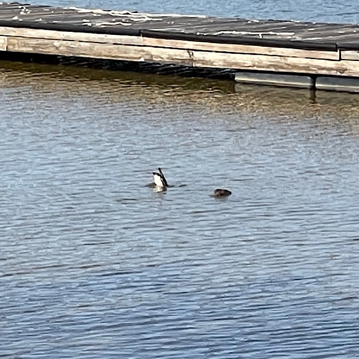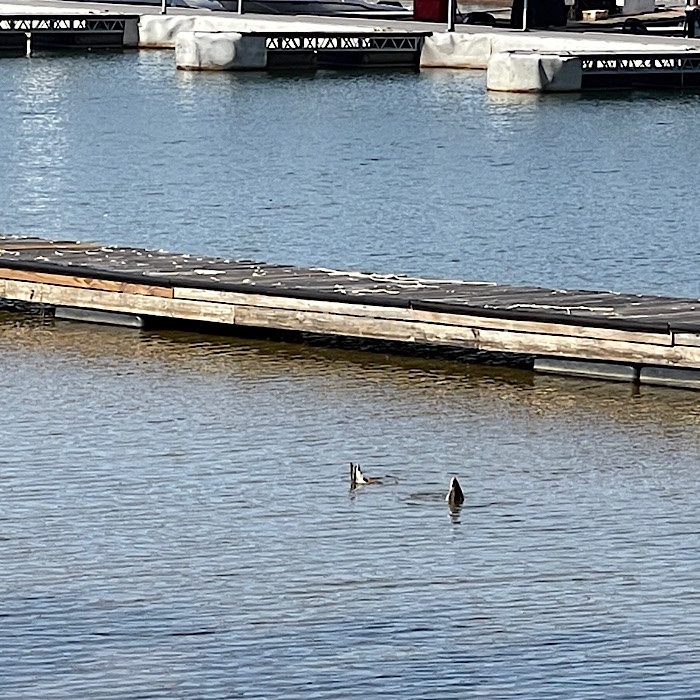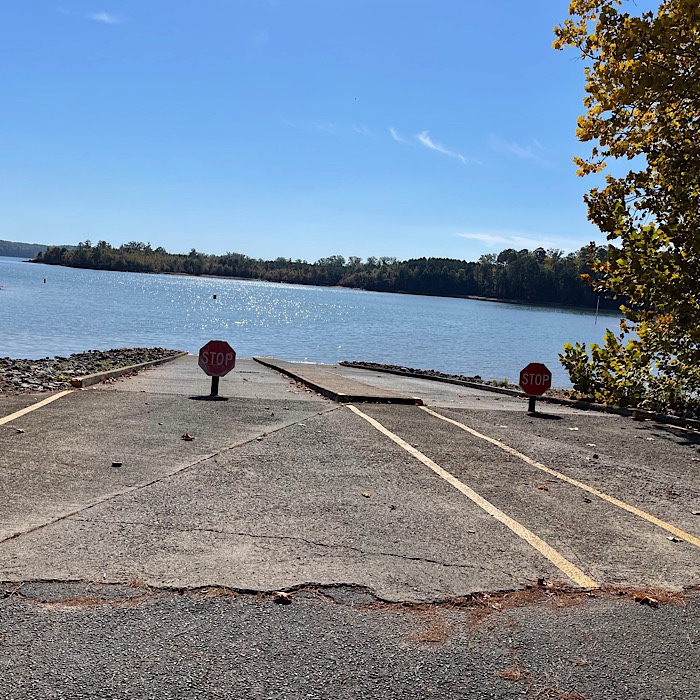 We took the road to the left first. It ends in boat ramps and parking for boat trailers. It also has a covered dock for putting in and taking out.