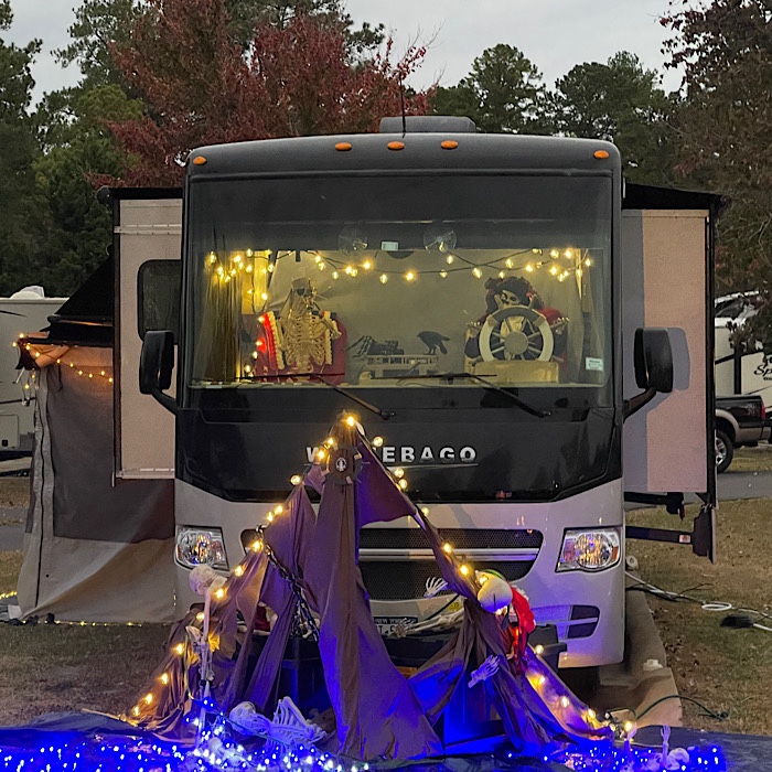 My next favorite was a big Class A (motor coach) turned into a pirate ship. There decorations broke during a windstorm, but they put them back together.