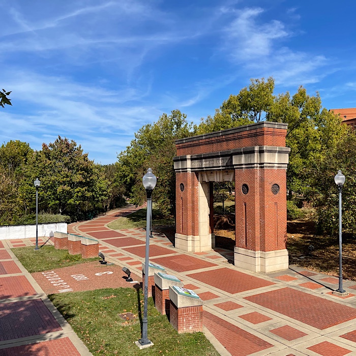 On the upstream side of the bridge, from the bridge we could see an arch that says Columbus Riverwalk.