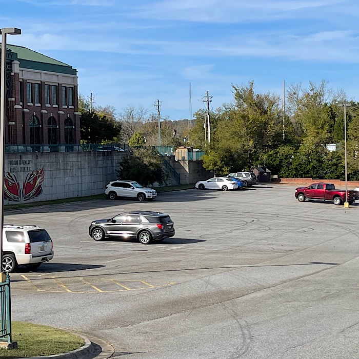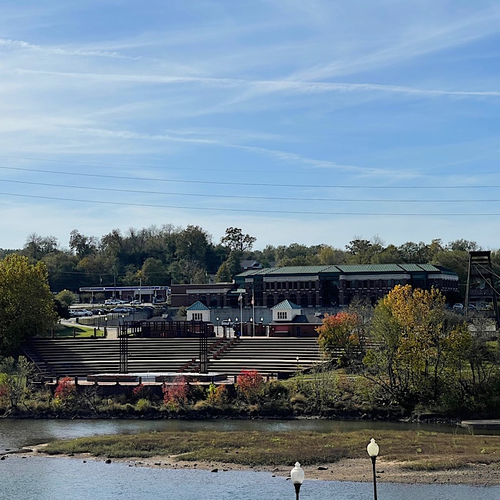 There was a playground and a food hall across the street from the playground. We could see into the amphitheater on the Alabama side.